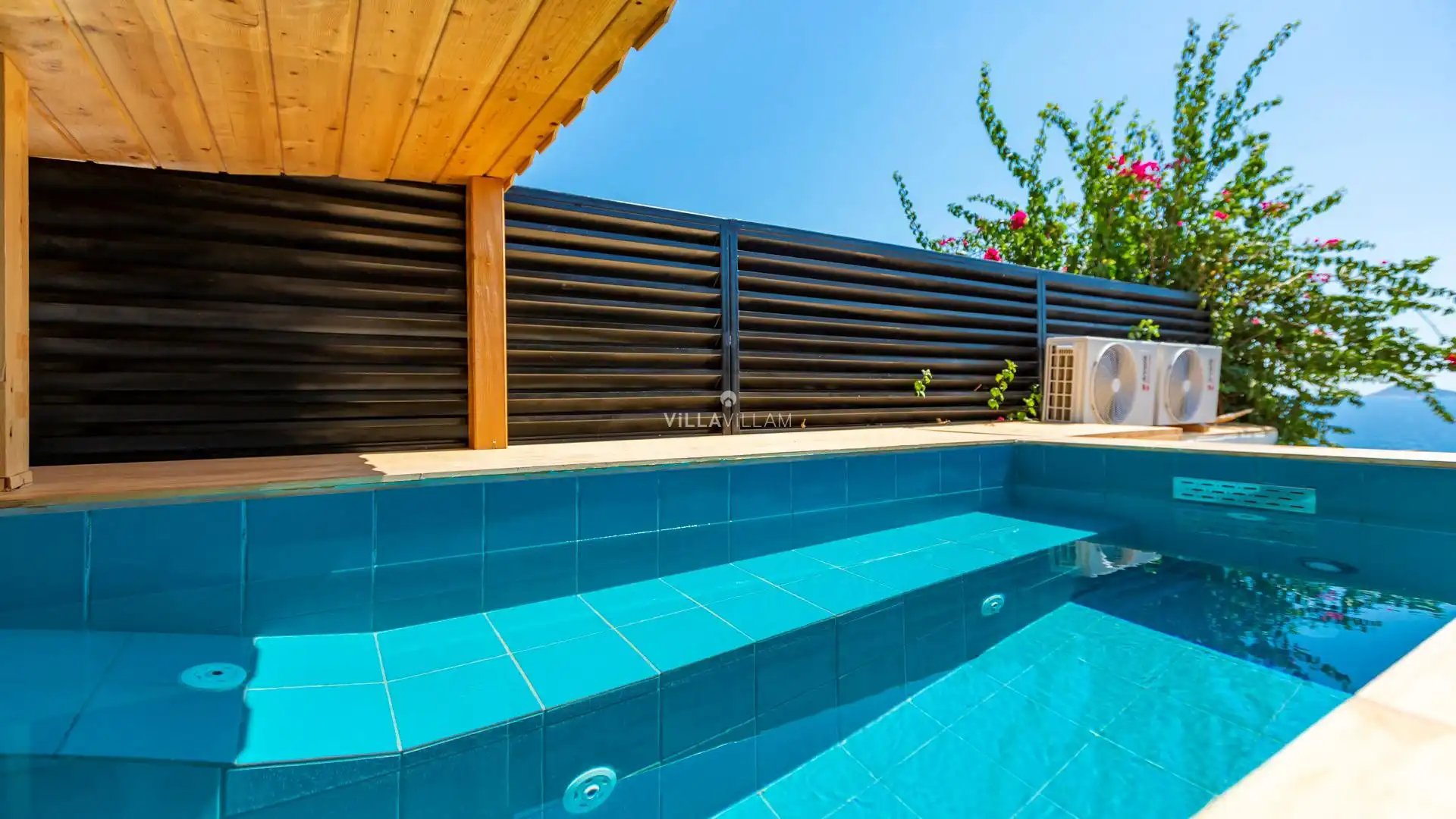 Deniz manzarası eşliğinde, temiz havanın, gökyüzünün ve güneşin tadını doyasıya çıkarabileceğiniz mini havuz alanında bitmesini istemeyeceğiniz bir tatil sizleri bekliyor. Şehirden uzak, sakin bir tatil arayan misafirlerimizin tam olarak aradığını bulacağı suit; tatilinize renk katacak havuz terasında kapasiteye uygun şezlong takımı ve oturma grubu ile keyifli bir alana sahiptir. Havuz terasında konforlu oturma odası ve tam donanımlı açık mutfağı; yatak odasında çift kişilik yatak ve ebeveyn banyosu bulunmaktadır.