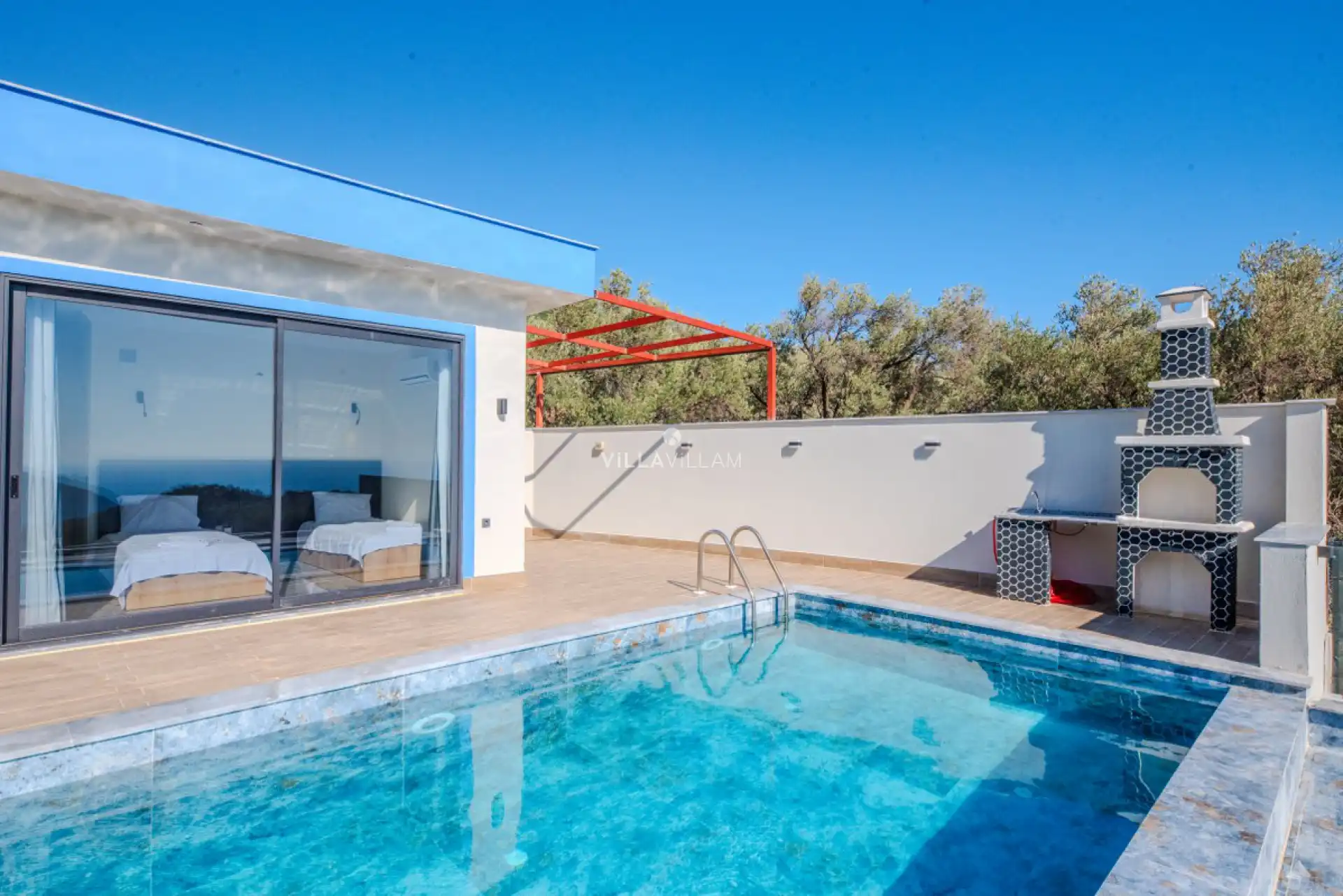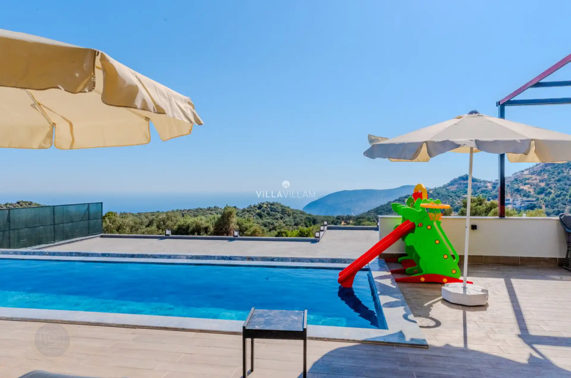 Kalkan Ordu bölgesinde bulunan suit villa, 2 yatak odası ile 4 kişilik konaklama kapasitesi sunmaktadır. Korunaklı havuz alanı ve jakuzisi ile ön plana çıkan villa çekirdek aile ve balayı çiftlerinin popüler seçenekleri arasında üst sıralarda yer almaktadır.