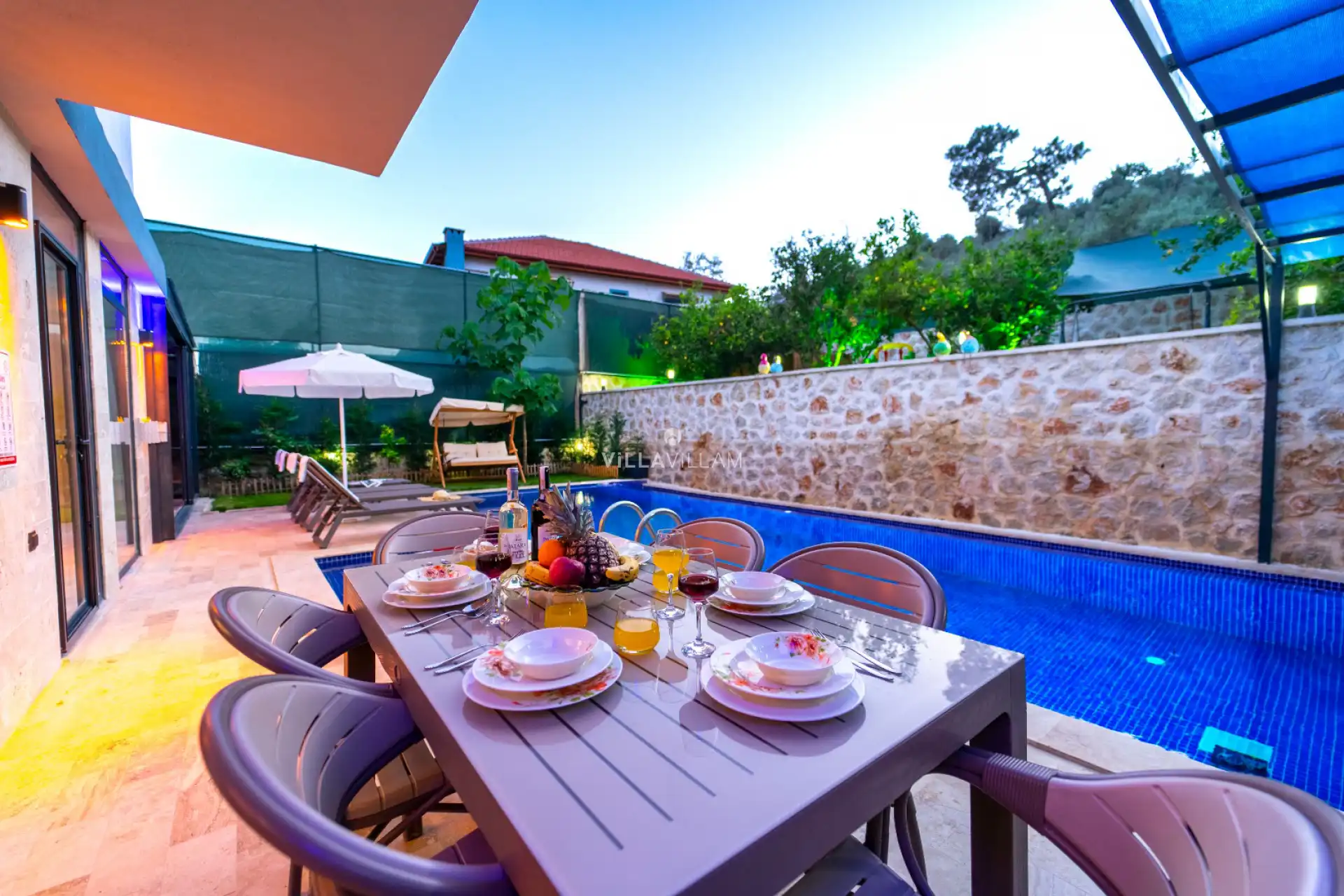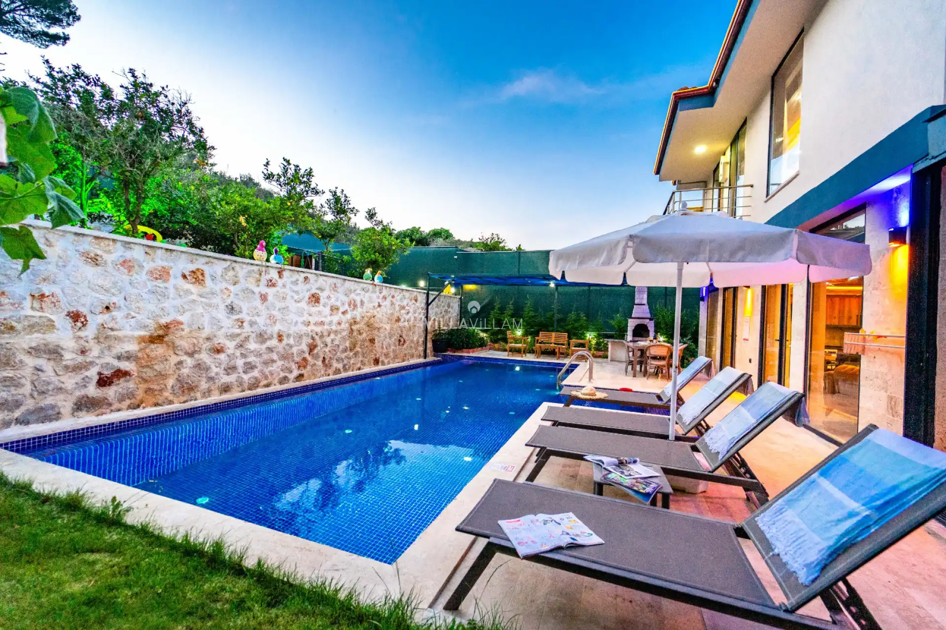 Kalkan Patara bölgesinde bulunan villa 3 yatak odası ile 6 kişilik konaklama kapasitesi sunmaktadır. Korunaklı havuz alanına sahip villa çekirdek aile ve balayı çiftlerinin popüler seçenekleri arasında yer almaktadır.