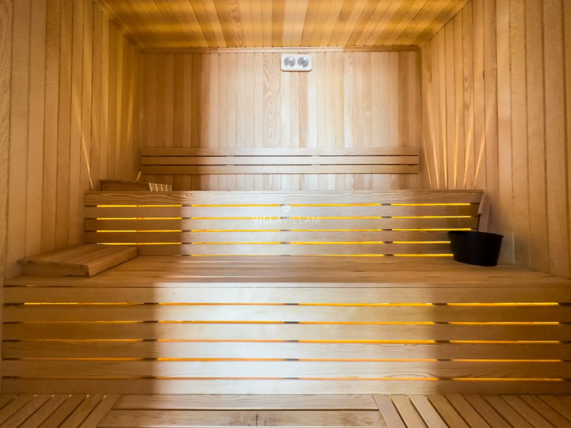 Muhteşem manzaraya karşı güneşlenip yüzebileceğiniz havuz terasında, kapasiteye uygun şezlong takımı, oturma grubu ve barbekü alanı bulunan villa, lüksü ve donanımı bir arada sunmaktadır. Yine havuz terasına açılan konforlu oturma odası ve tam donanımlı açık mutfağı; üç yatak odasında çift kişilik yatak, ebeveyn banyosu; dördüncü yatak odasında iki tek kişilik yatak ve ebeveyn banyosu; beşinci yatak odasında çift kişilik yatak, ebeveyn banyosu, hamam, sauna, jakuzi, manzaraya açılan terasında şezlong ve oturma alanı bulunmaktadır. Villada, muhteşem deniz manzarasına hâkim olabileceğiniz, ayrıcalıklı bir tatilin keyfini sürebileceksiniz.