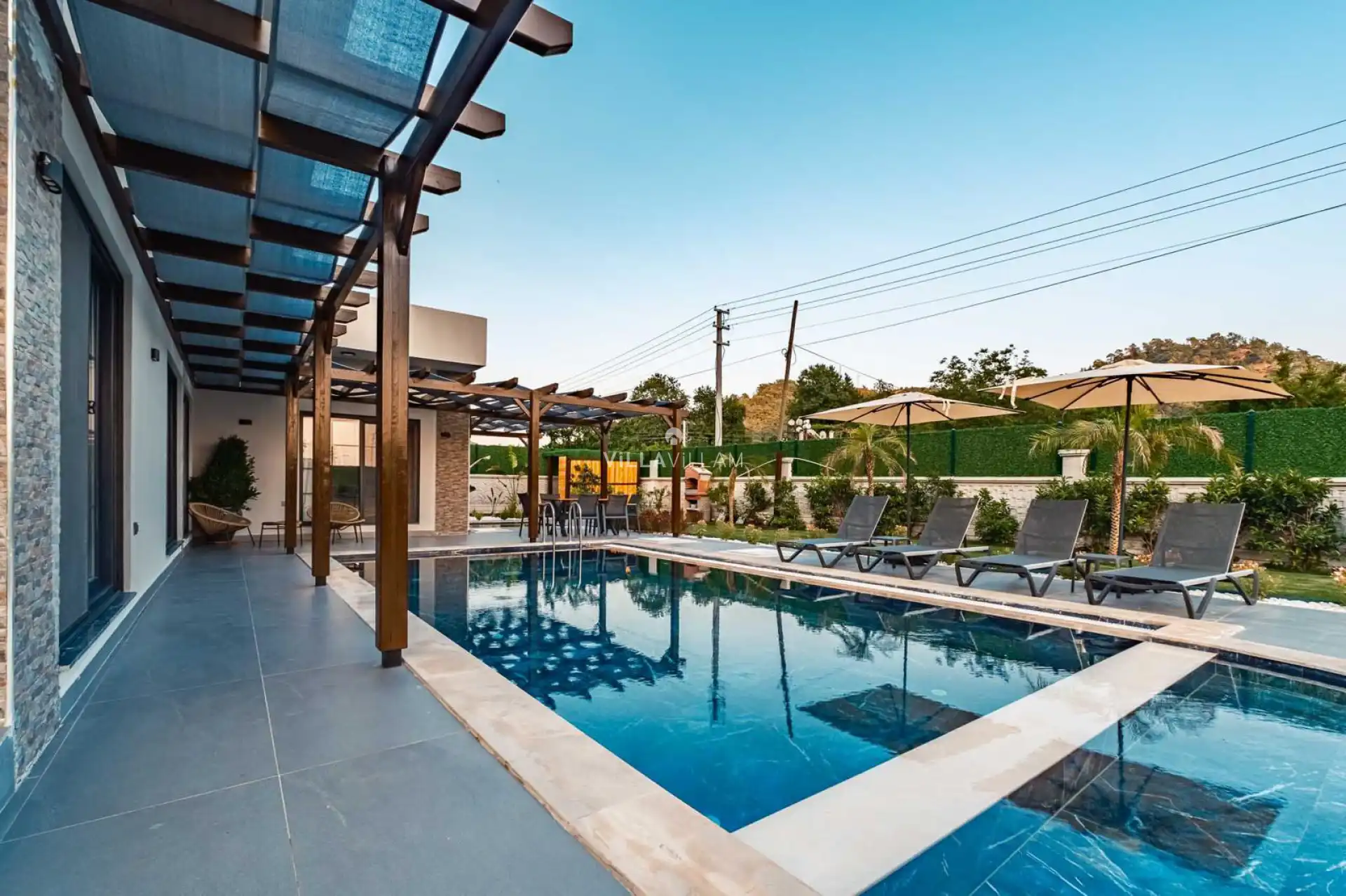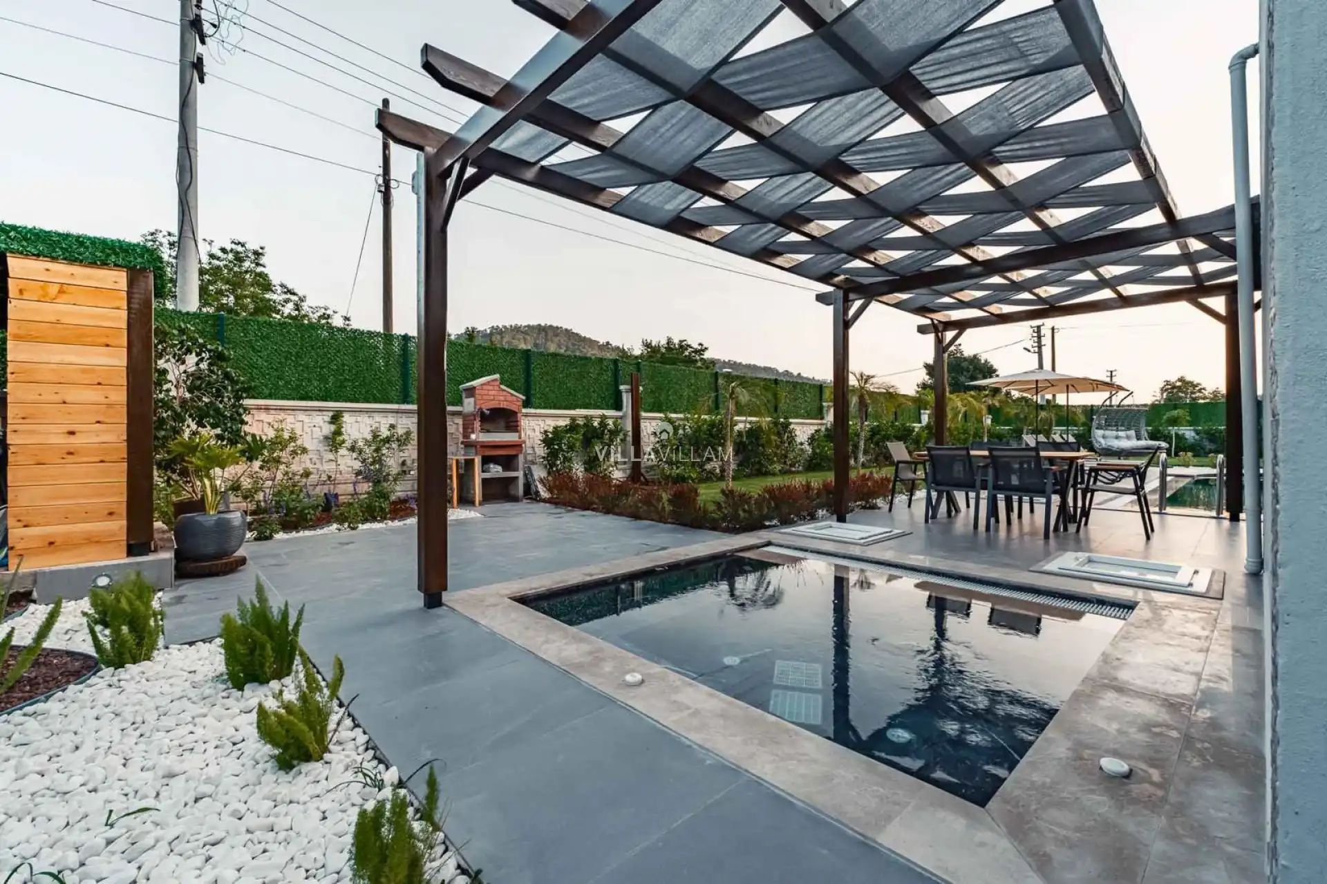 Not: Villamızın havuzu tuzlu su sistemine sahiptir. Bu sistem, klor kullanımını azaltarak daha doğal bir yüzme ortamı sunmaktadır.