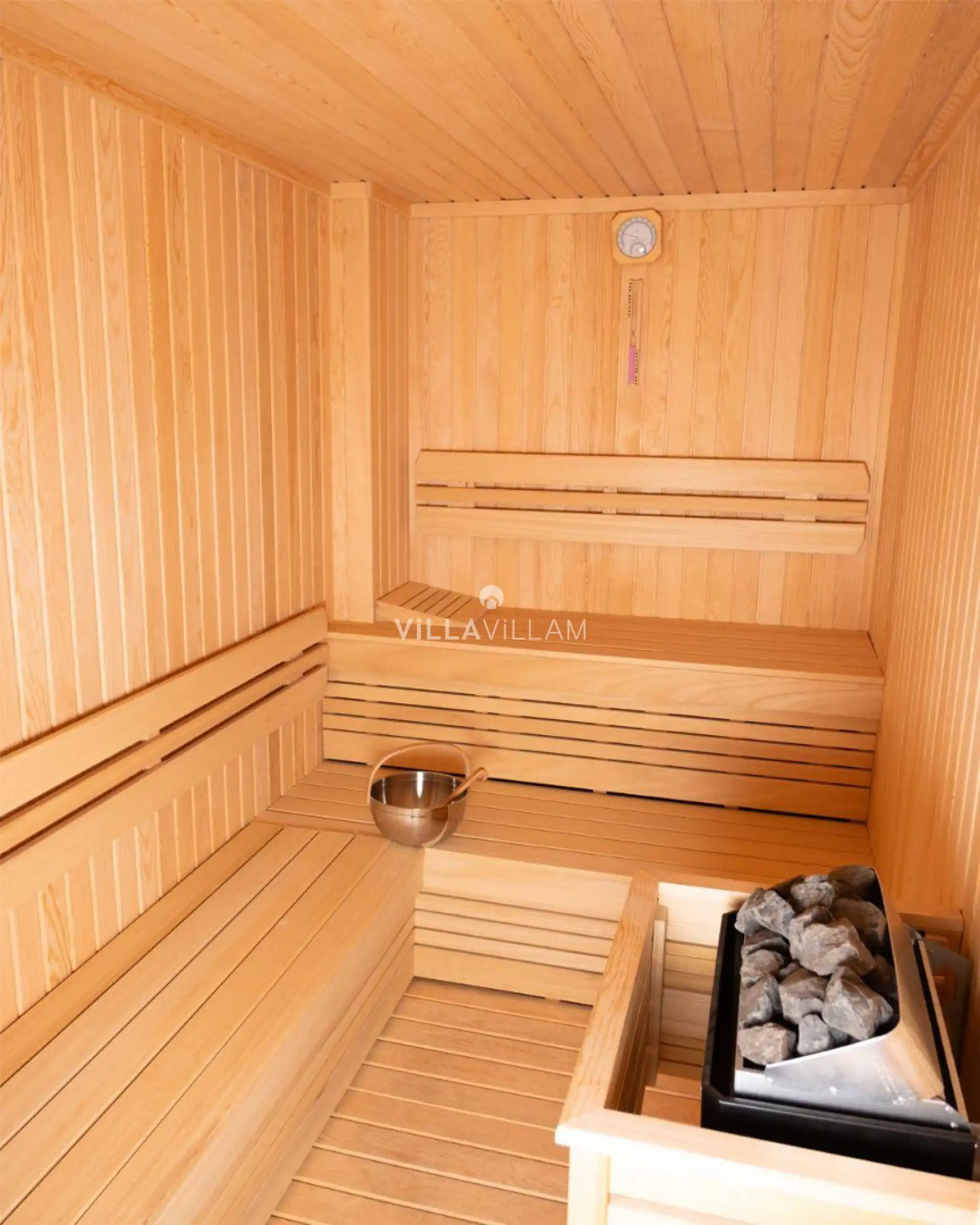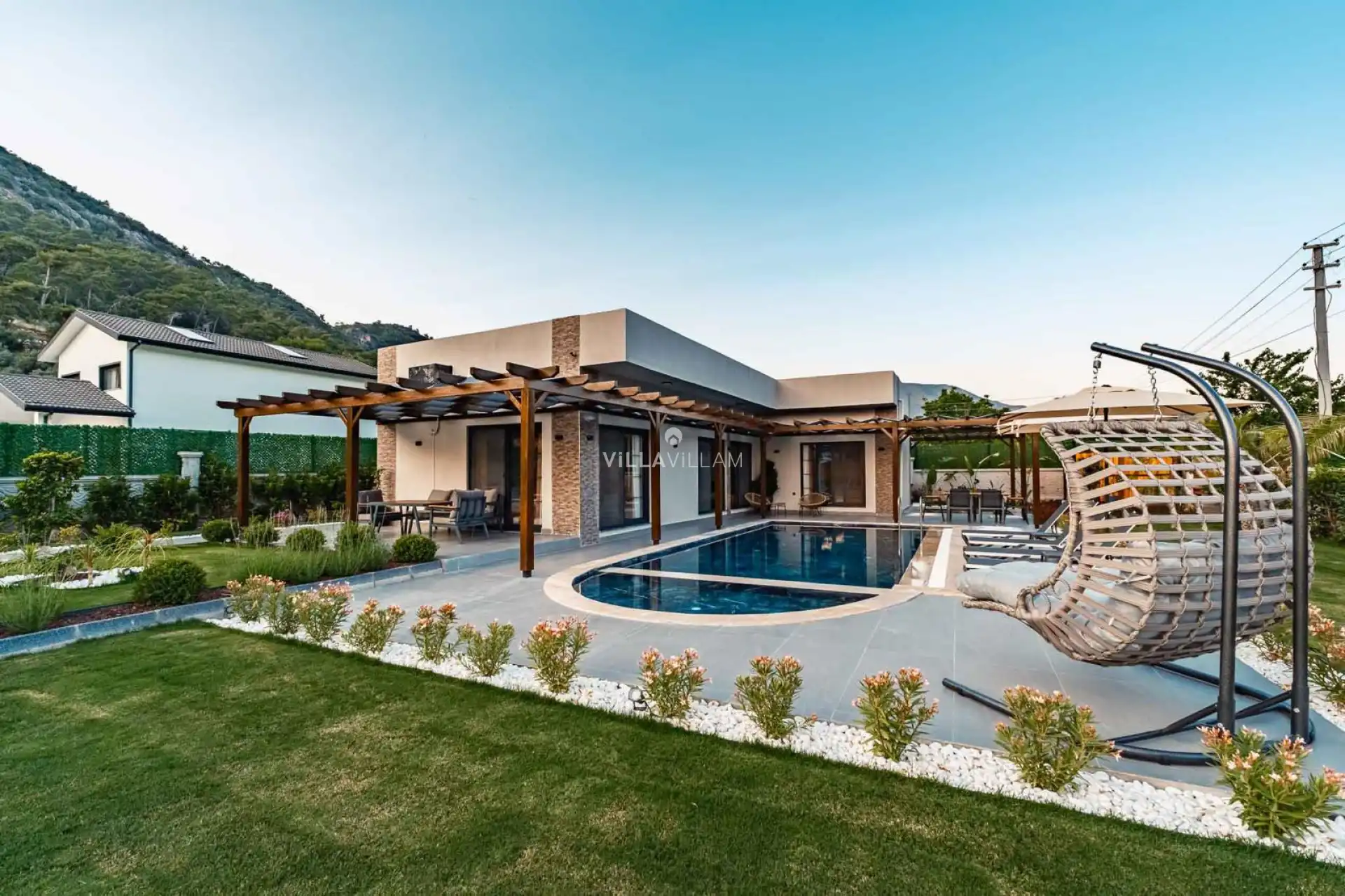 Yorgunluğunuzu ve stresinizi geride bırakacağınız, sevdikleriniz ve ailenizle unutulmaz anılar biriktirebileceğiniz geniş, yemyeşil bahçe alanında şezlong takımı, oturma grubu, jakuzi, salıncak ve barbekü alanı bulunmaktadır. İç mekanda ise tüm ihtiyaçlarınıza karşılık verecek konforlu bir oturma odası ve donanımlı açık mutfak yer almaktadır. Birinci yatak odasında çift kişilik yatak ve ebeveyn banyosu, ikinci yatak odasında ise çift kişilik yatak ve banyo bulunmaktadır. Ayrıca ortak kullanıma ait bir banyo daha mevcuttur.