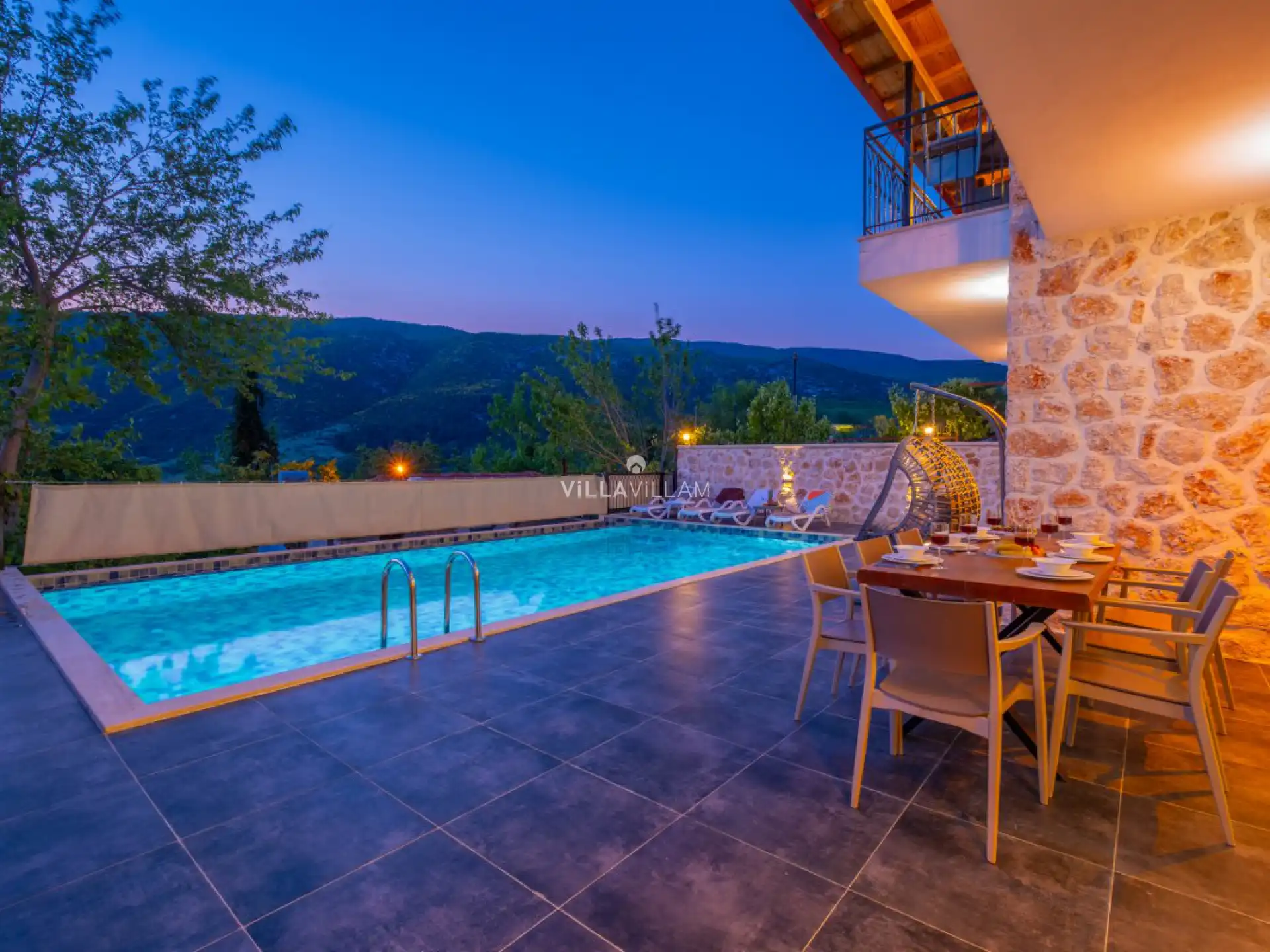 Kaş Hacıoğlan köyünde bulunan villa, 3 yatak odalı 6 kişilik konaklama kapasitesi sunmaktadır. Korunaklı havuz alanına sahip olan villa, arkadaş grubu ve kalabalık aileler için uygundur.