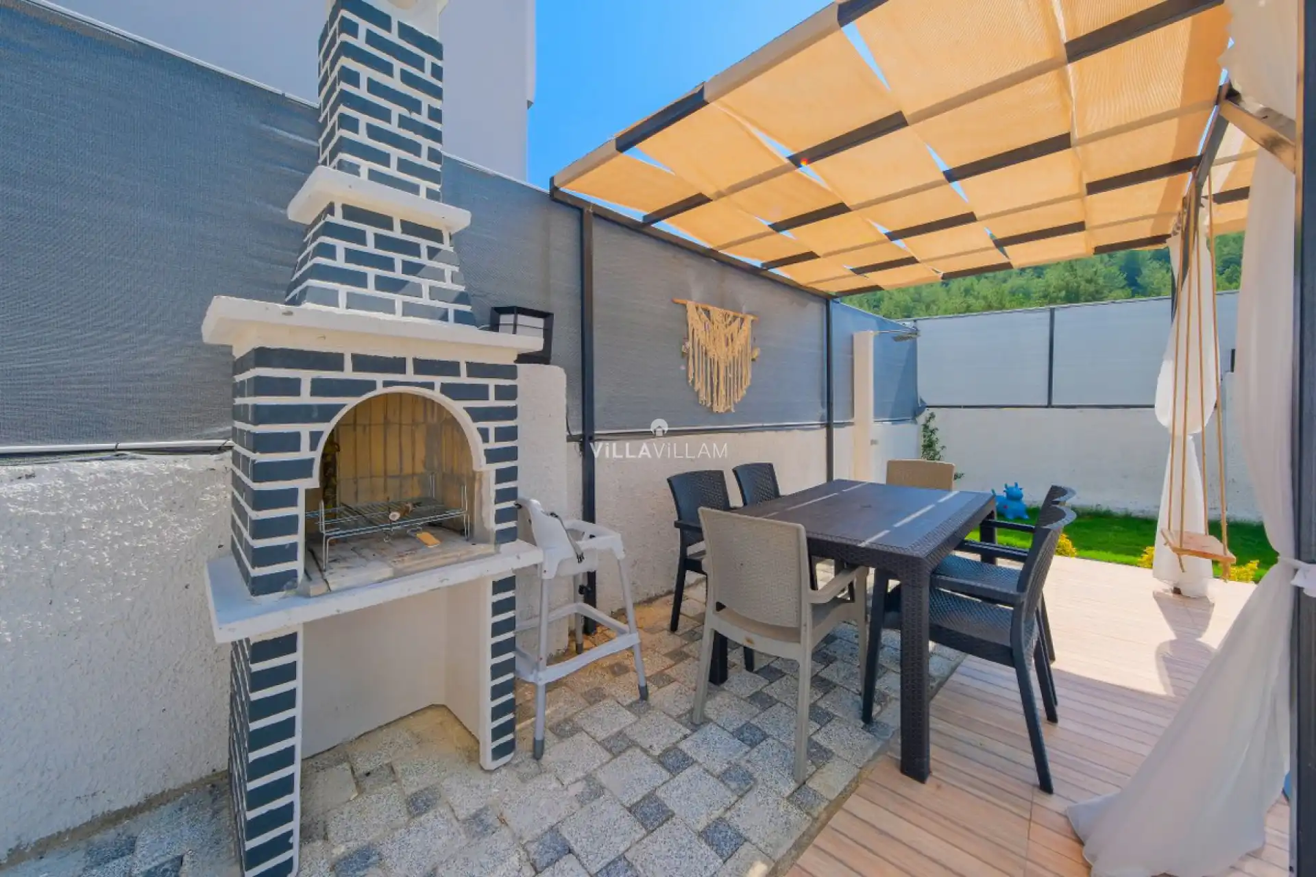 Tüm yılın yorgunluğundan sıyrılabileceğiniz villamız şehir kargaşasından uzak unutulmayacak bir tatil deneyimi vadetmektedir. Yorgunluğunuzu ve stresinizi geride bırakacağınız, sevdikleriniz ve aileniz ile unutulmayacak anılar biriktirebileceğiniz geniş yemyeşil bahçe alanı ve havuz alanında şezlong takımı, oturma grubu, salıncak ve barbekü alanı bulunmaktadır. İç mekanda tüm ihtiyaçlarınıza karşılık verecek konforlu oturma odası ve donanımlı açık mutfağı; birinci yatak odasında da çift kişilik yatak ve ebeveyn banyosu; ikinci yatak odasında bir adet çift kişilik yatak ve ebeveyn banyosu; üçüncü yatak odasında iki tek kişilik yatak ve banyo bulunmaktadır.