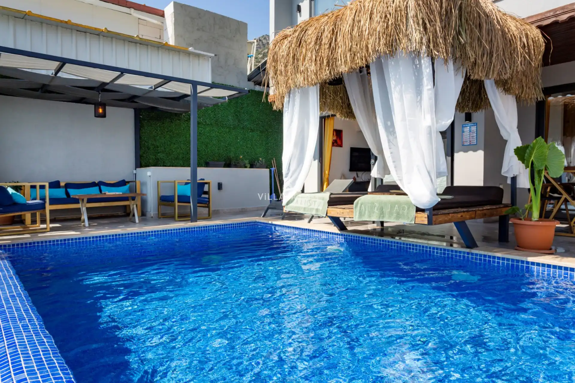 Kalkan Kördere mevkiinde konumlandırılmış villa 2 yatak odasıyla 4 kişilik konaklama kapasitesi sunmaktadır. Korunaklı havuz alanı ve deniz manzarasına sahip olan villa, balayı çiftlerinin ve çekirdek ailelerin tercihleri arasında ilk sırada yer almaktadır.