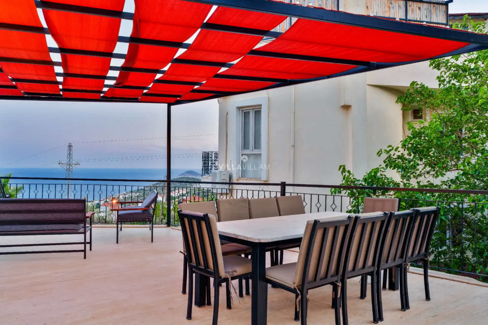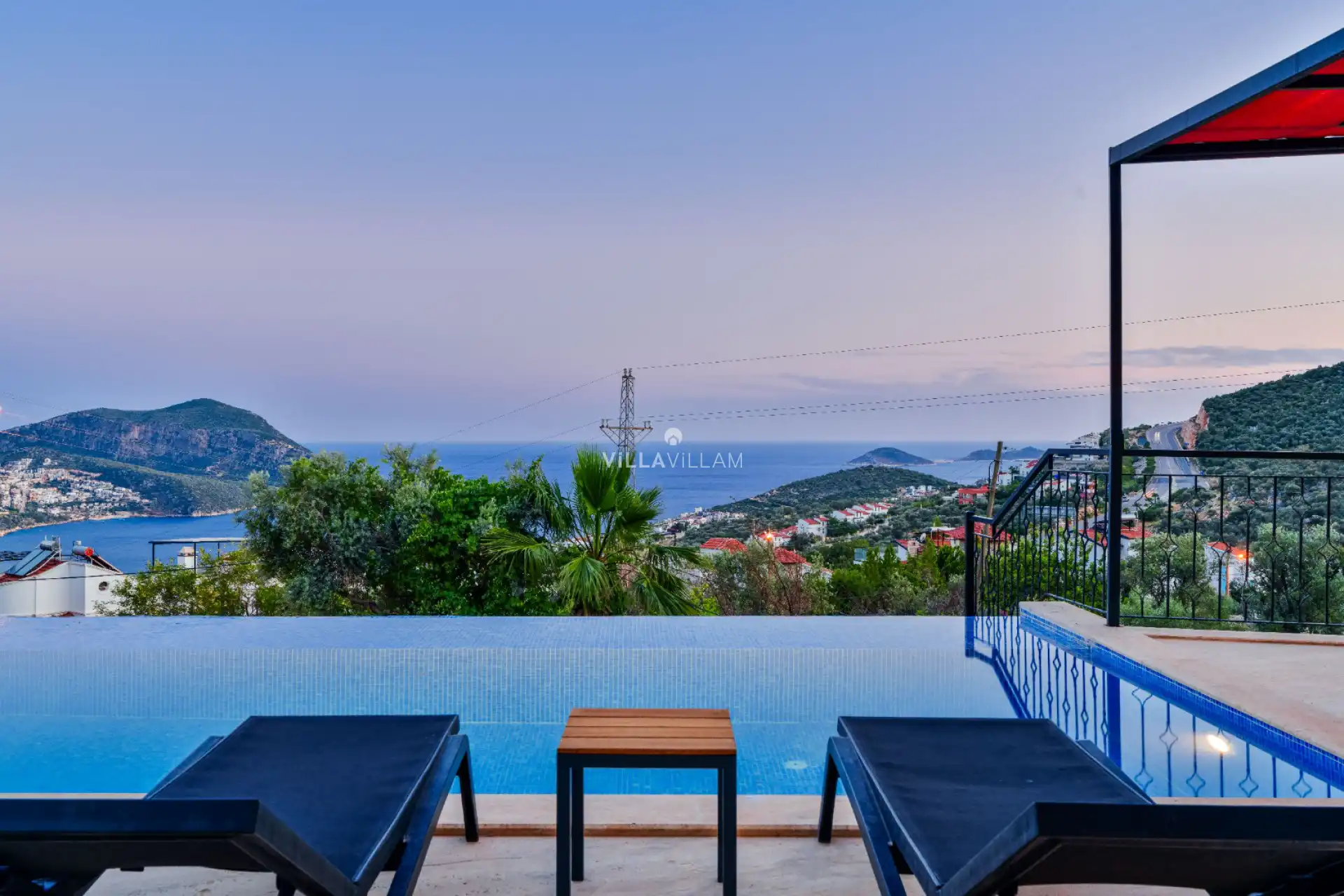 Kalkan Ortalaan bölgesinde bulunan villa, 6 yatak odasıyla 12 kişilik konaklama kapasitesi sunmaktadır. Deniz manzarasına hakim olan villa geniş aileler ve arkadaş grupları için ideal seçenekeler içerisindedir.