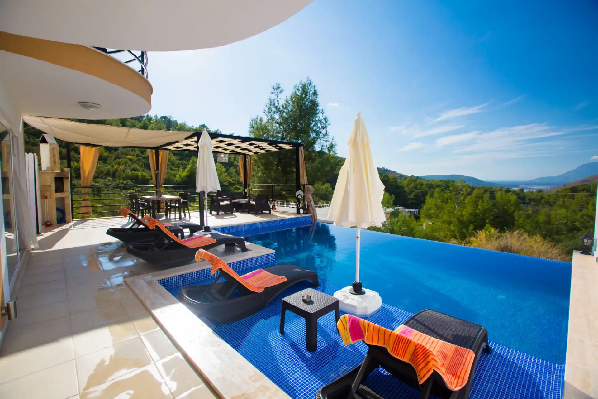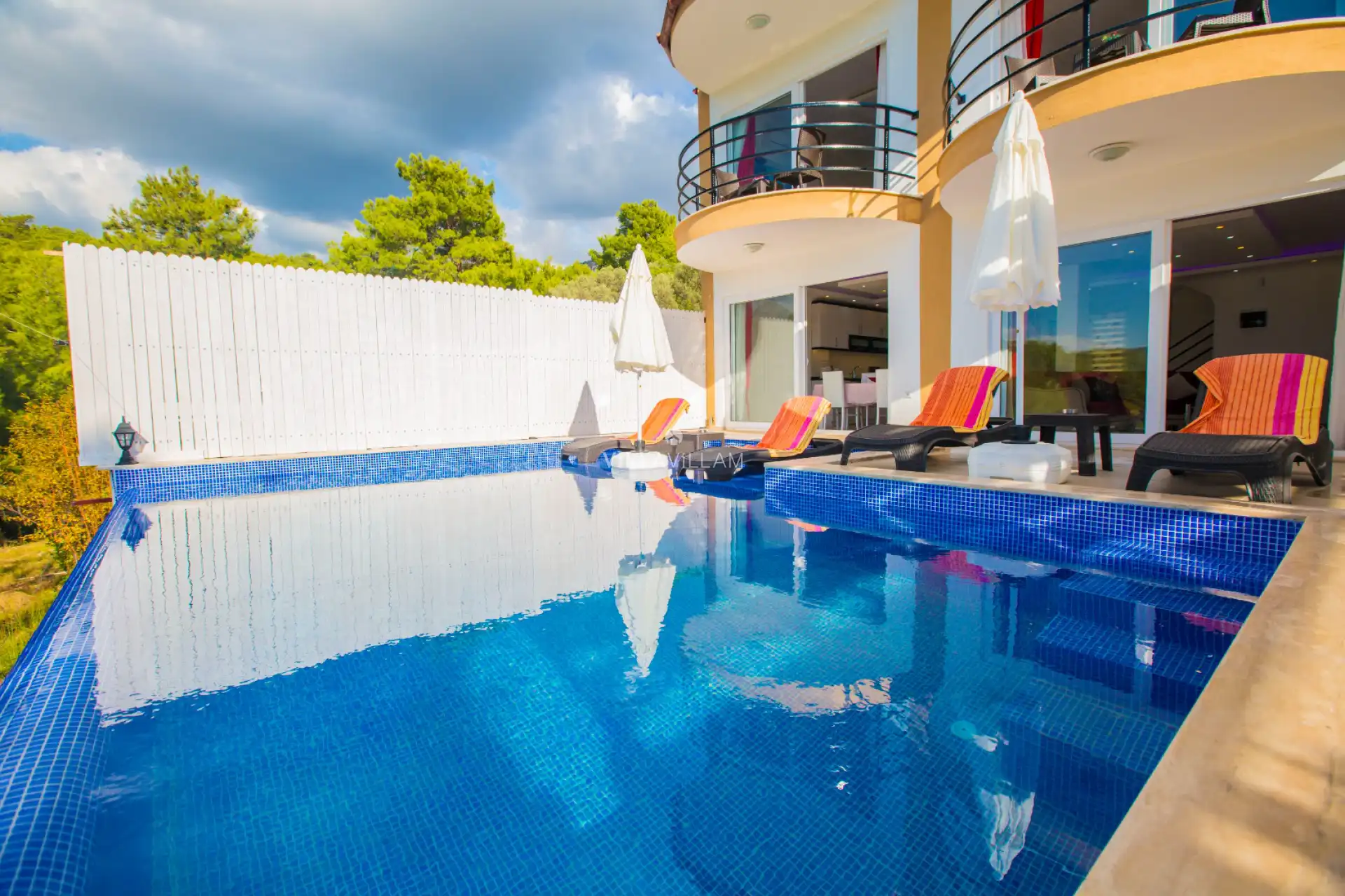 Kalkan Akbel bölgesinde bulunan villa, 2 yatak odasıyla 4 kişilik konaklama kapasitesi sunmaktadır. Korunaklı havuz alanı ve doğa manzarasına hakim konumuyla göz dolduran villa, çekirdek aile ve balayı çiftleri için uygundur.