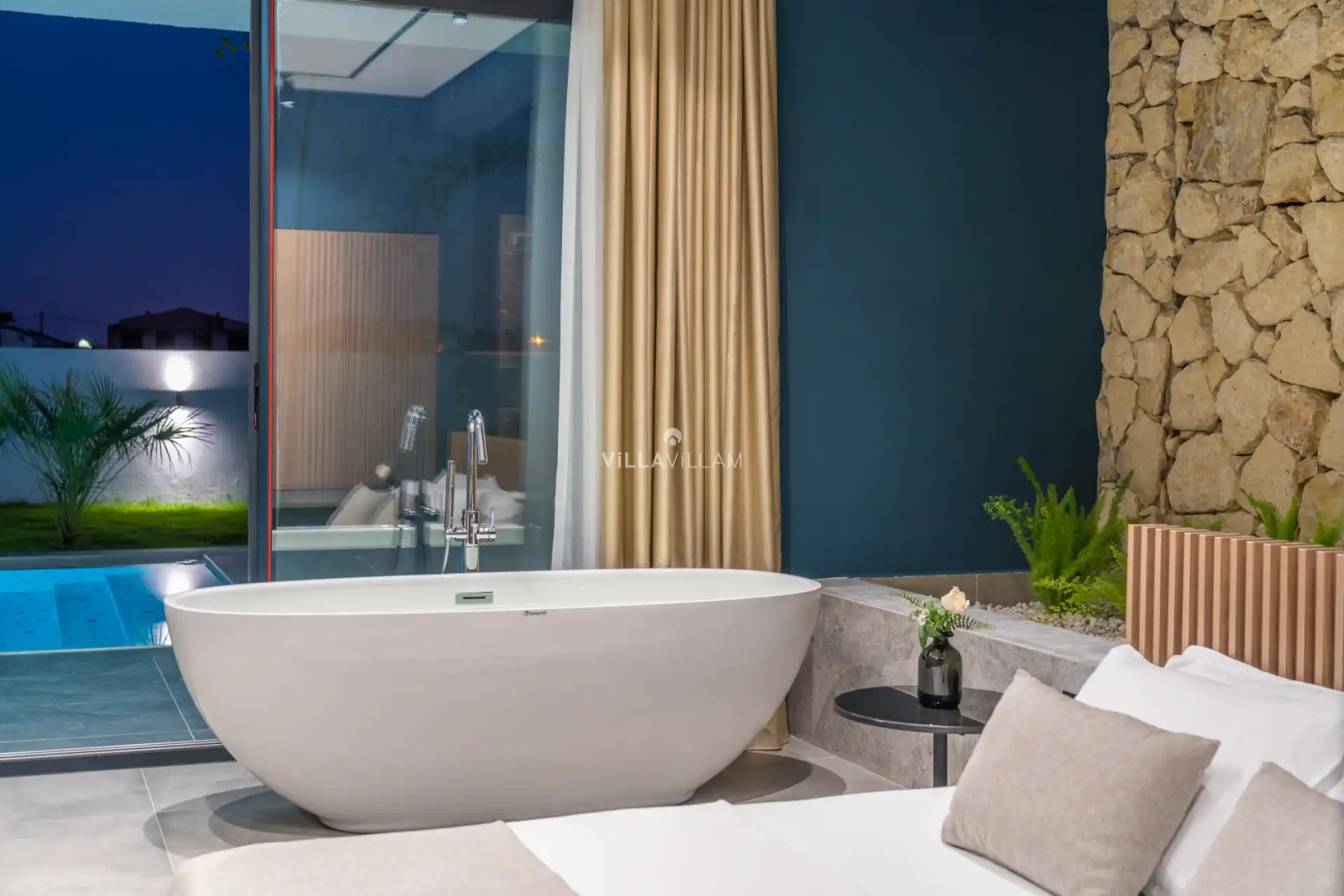 Düzenli bahçe peyzajı, ideal ebatlardaki havuzu ve zamanınızın çoğunu geçirebileceğiniz bahçe oturma gruplarına sahip villamızın her iki yatak odasında çift kişilik yatak ve ebeveyn banyosu yer almaktadır.