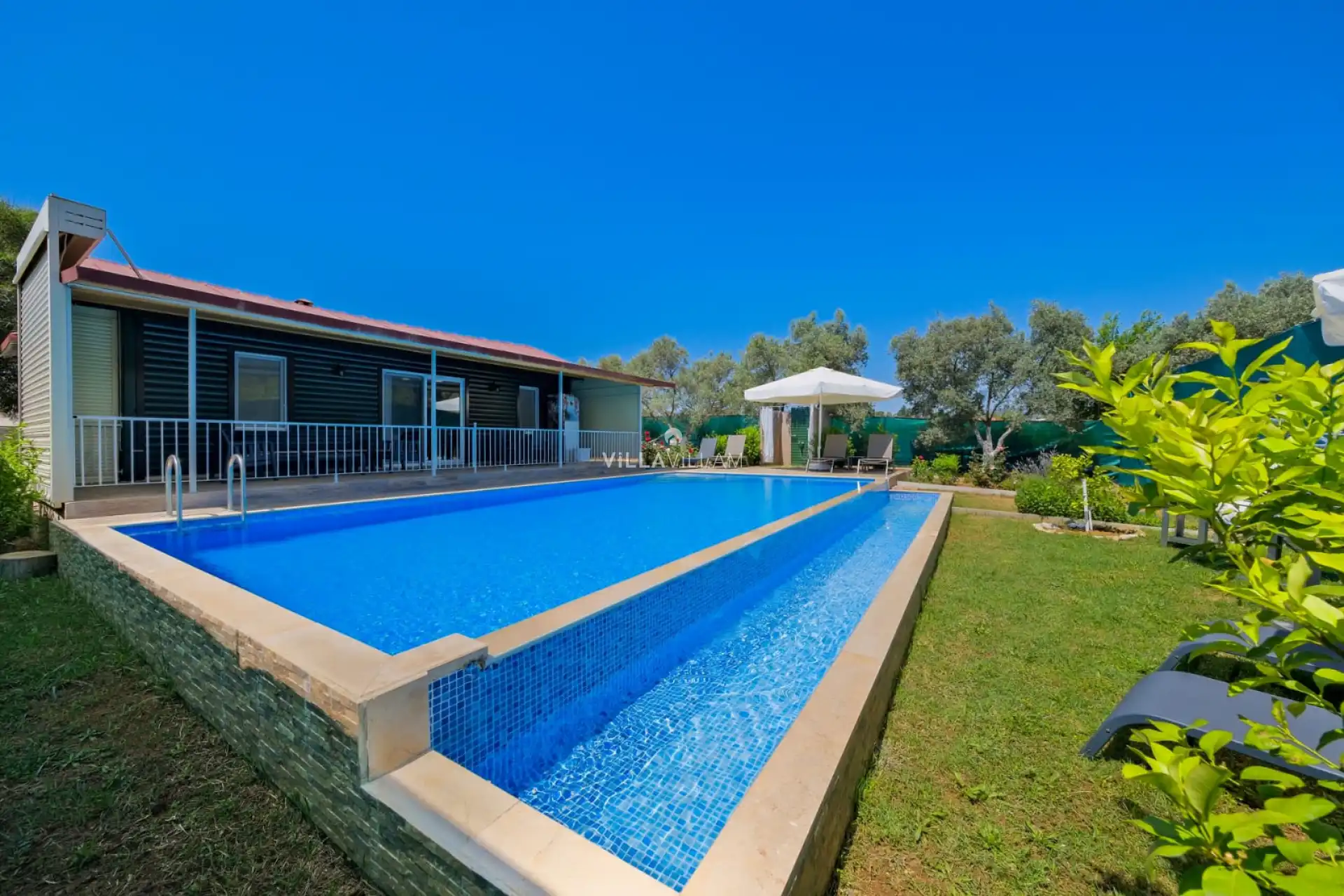 Doğa içinde sakin bir konumuna rağmen merkezi ve turizm noktalarına yakın mesafe konuma sahip olan villa, havuz ve bahçe alanında salıncak, hamak, şezlong takımı, oturma grubu, barbekü alanıve minik misafirler için düşünülmüş oyun parkı ile keyifli bir alana sahiptir. Geniş havuz terasına açılan konforlu oturma odası ve donanımlı açık mutfağı; birinci yatak odasında çift kişilik yatak, ebeveyn banyosu; ikinci yatak odasında da çift kişilik yatak; üçüncü yatak odasında iki tek kişilik yatak ve ortak kullanım banyosu bulunmaktadır.