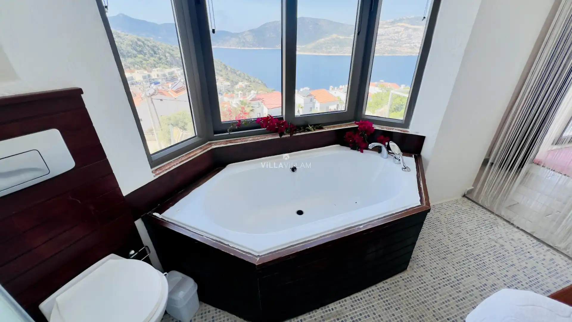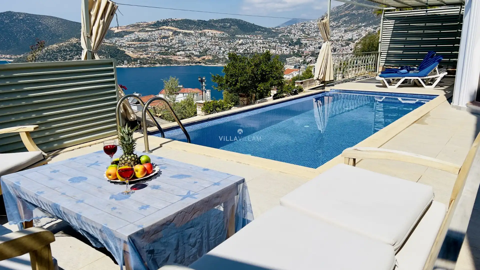 Muhteşem manzaraya karşı, güneşlenip yüzebileceğiniz havuz terasında kapasiteye uygun şezlong takımı, konforlu oturma grubu, masa tenisi ve barbekü alanı bulunmaktadır. Havuz terasına açılan konforlu oturma odası ve tam donanımlı açık mutfağı; birinci yatak odasında çift kişilik yatak ve ebeveyn banyosu; ikinci yatak odasında bir çift kişilik yatak bir tek kişilik yatak ve banyo; üçüncü yatak odadında iki tek kişilik yatak ve banyo bulunmaktadır. Oda teraslarından muhteşem deniz manzarasına hakim olabileceğiniz, ayrıcalıklı bir tatilin keyfini sürebileceksiniz.
