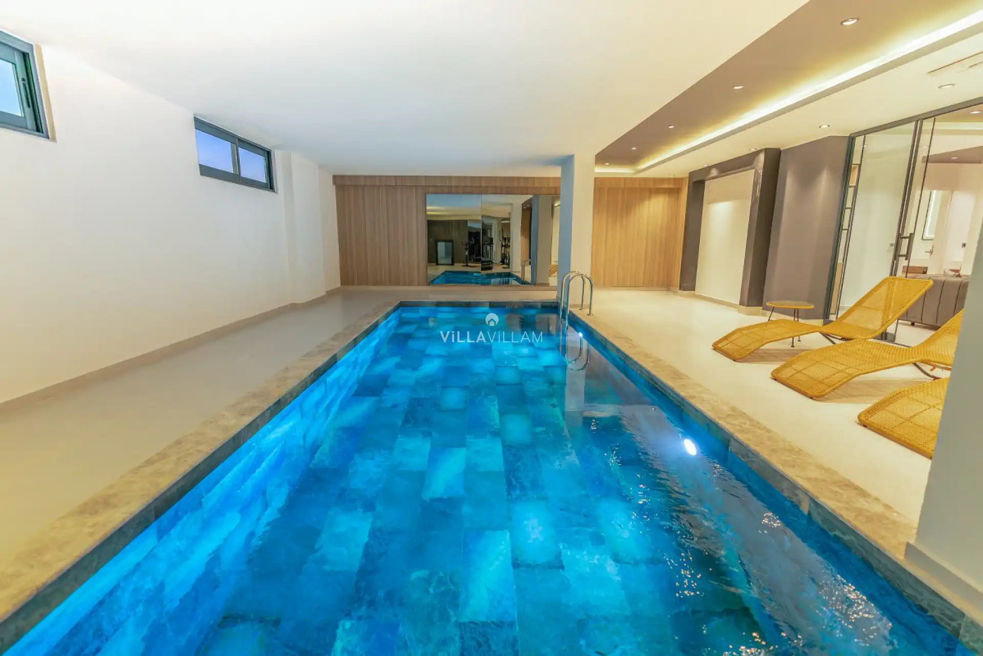 Mavinin her tonuna uyanacağınız Kalkan'ın muhteşem doğasında tüm yorgunluğunuzdan arınacağınız, terapi gibi bir tatil sizleri beklemektedir. Özenle döşenmiş bahçe ve havuz alanı ile en özel tatil anılarınıza ev sahipliği yapacak villamız; geniş havuz alanı ve kış sezonunda da tatil beklentilerinizde göz önüne alınarak hizmetinize sunulan kapalı ısıtmalı havuz ve sauna, eğlenceli vakitler geçirebileceğiniz sinema salonu ve spor sever misafirlerimiz için villamızda fitness bölümü bulunmaktadır. Villa siz değerli misafirlerine kendinizi özel hissedeceğiniz bir tatil imkanına sunmaktadır. Konforunuz göz önünde bulundurularak dizayn edilmiş ve modern mimariye sahip villanın dört yatak odasında da çift kişilik yatak ve banyo bulunmaktadır.