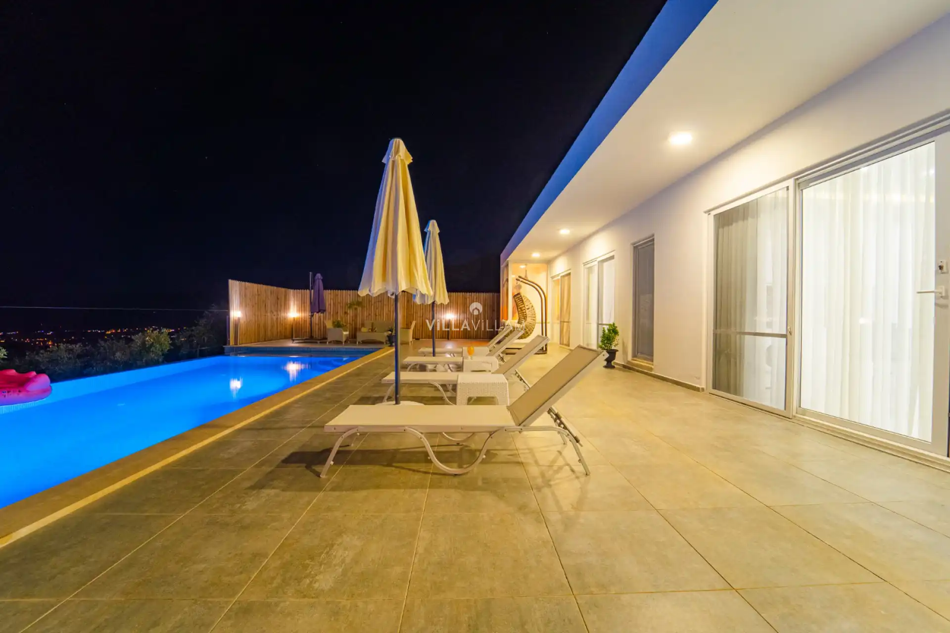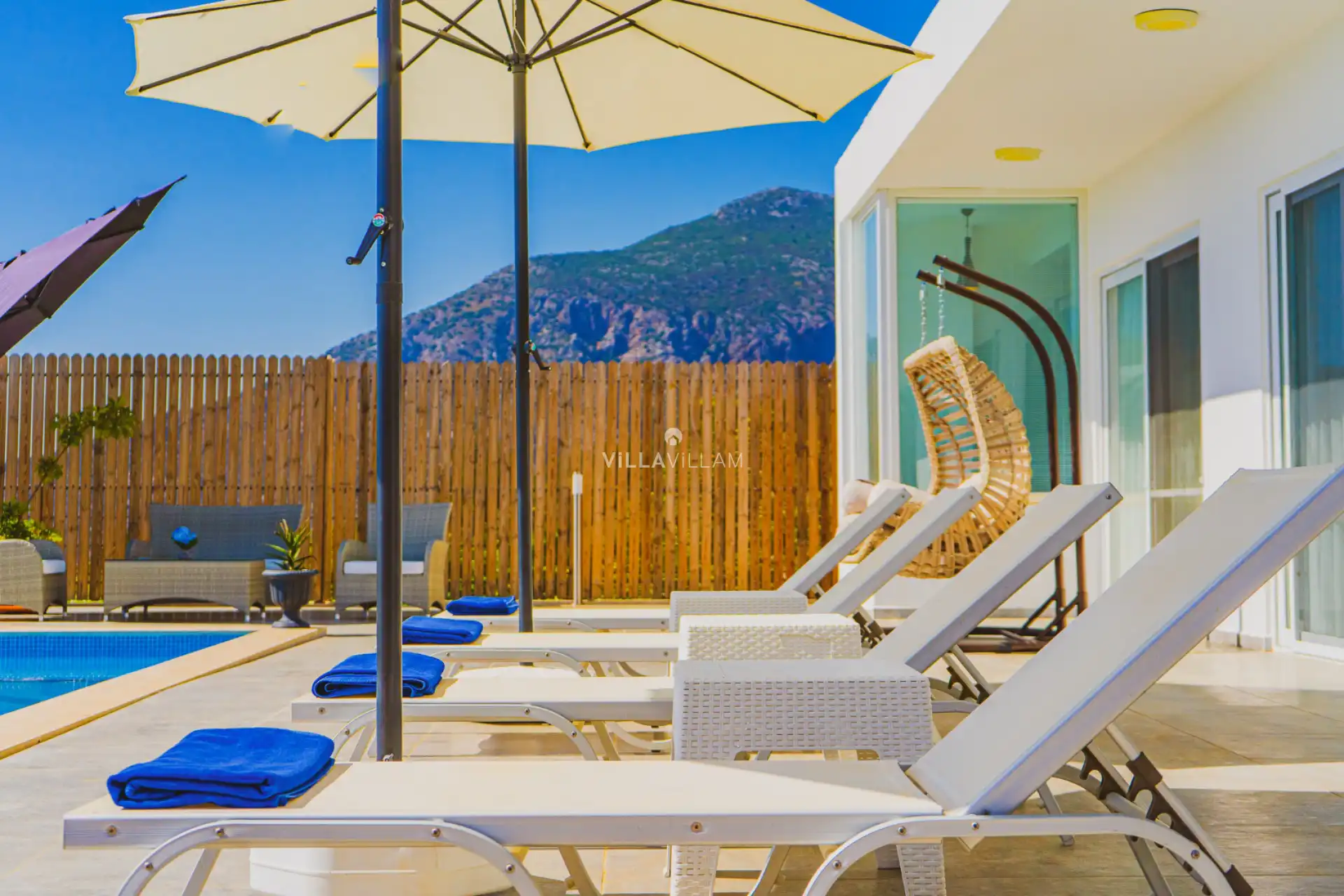 Kalkan Üzümlü bölgesinde bulunan villa, 2 yatak odasıyla 4 kişilik konaklama kapasitesi sunmaktadır. Korunaklı havuz alanı ve jakuzisi ile dikkat çeken villa çekirdek aile ve balayı çiftleri için ideal seçenekler arasındadır.