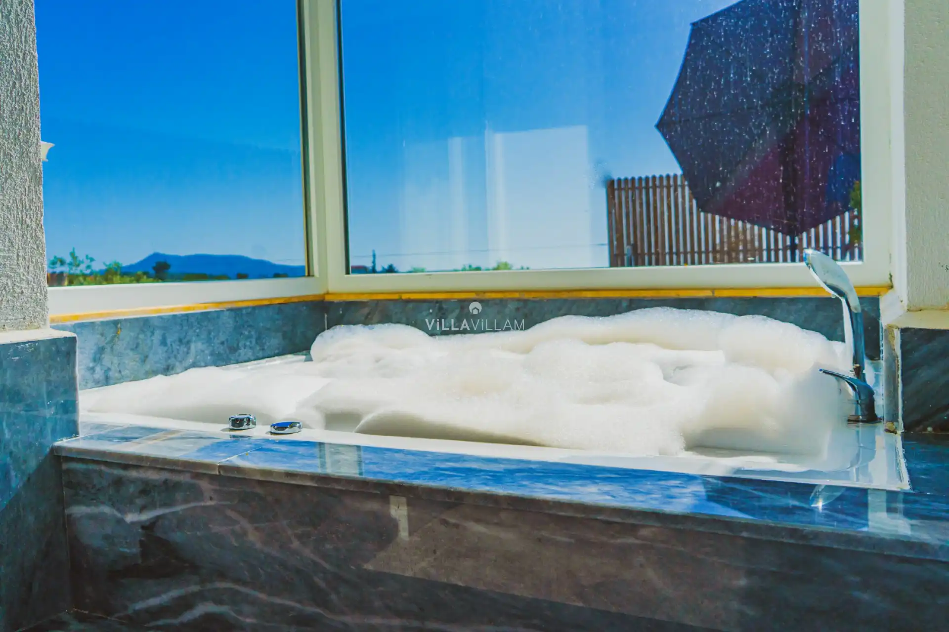 Muhteşem doğasında, şehir kargaşasından uzak tatil arayan misafirlerimiz için unutulmayacak bir tatil deneyimi sunan villanın havuz alnında; şezlong takımı, oturma grubu ve barbekü alanı; konforlu oturma odası bulunmaktadır. Birinci yatak odasında da çift kişilik yatak, jakuzi ve ebeveyn banyosu; ikinci yatak odasında çift kişilik yatak ve ebeveyn banyosu bulunmaktadır.