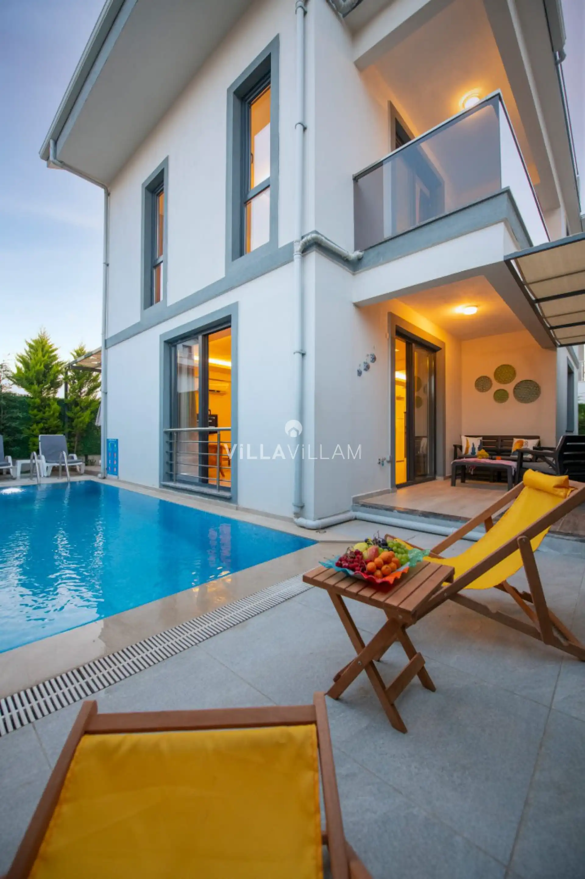Fethiye Merkez bölgesinde bulunan villa 4 yatak odasıyla 8 kişilik konaklama kapasitesi sunmaktadır. Korunaklı havuz alanına sahip villa çekirdek aile ve kalabalık arkadaş grupları ve geniş ailelerinde popüler seçenekleri arasında yer almaktadır. Bahçe alanında konumlandırılan konforlu oturma grupları, kapasiteye uygun şezlong ve masa, sandalyeler almaktadır. İç mekanı da konforunuz gözetirilerek özenle dizayn edilen villamız konum avantajı sebebiyle merkeze ve plajlara rahat bir ulaşım imkanı sağlamaktadır.