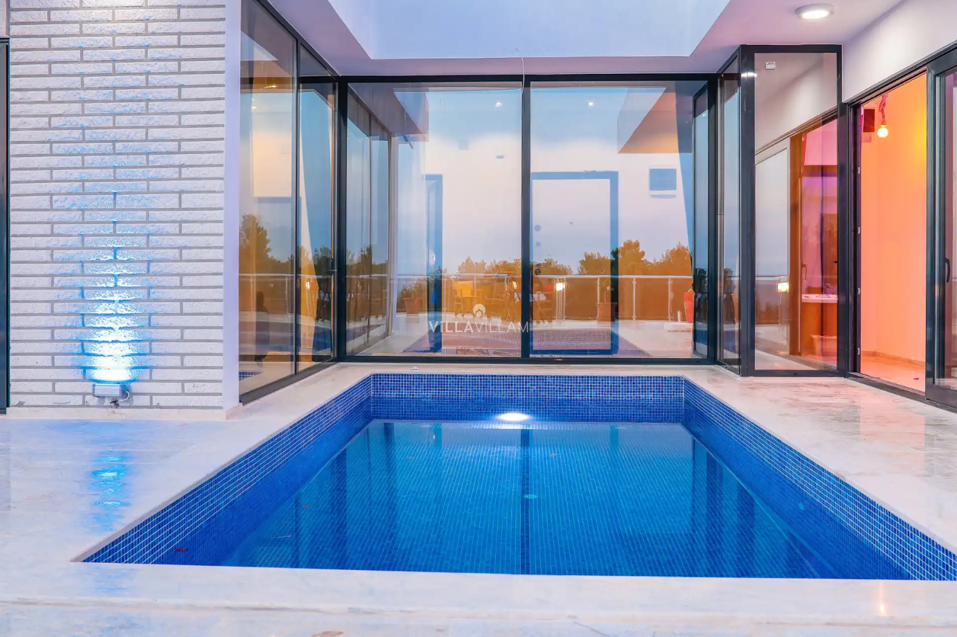 Geniş havuz terasına açılan konforlu oturma odası donanımlı açık mutfağı bulunan villanın yatak odasında çift kişilik yatak, ebeveyn banyosu ve jakuzi bulunmakta olup konforlu bir tatil için her detay düşünülmüştür. Ayrıca kapalı havuzuyla, dört mevsim tatil planlarınıza ev sahipliği yapmaya adaydır.
