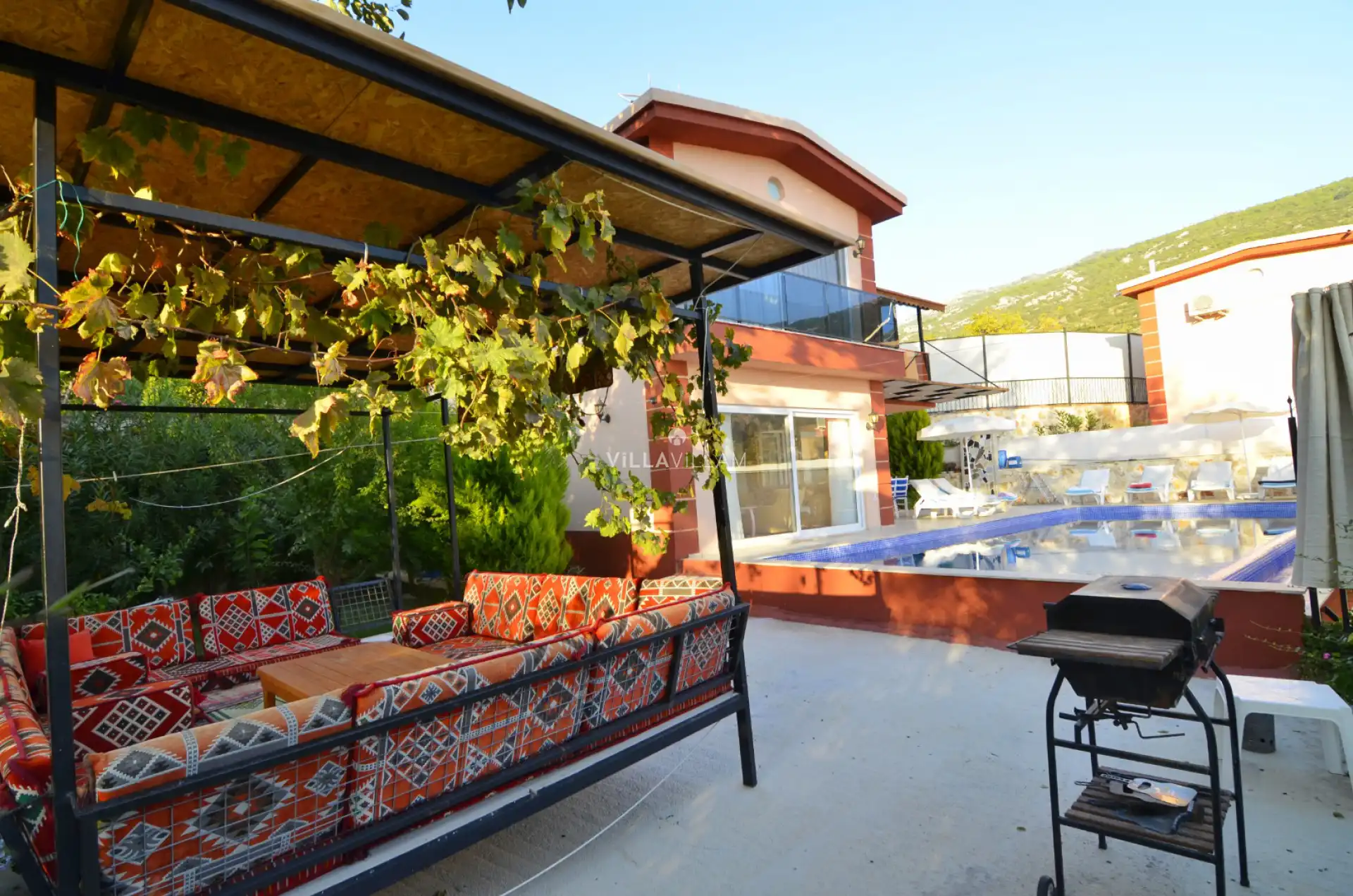 Doğa içinde sakin bir konuma sahip olan villa, havuz terasında kapasiteye uygun şezlong takımı, oturma grubu ve barbekü alanı ile keyifli bir alana sahiptir. Geniş havuz ve bahçe alanına açılan konforlu oturma odası, tam donanımlı açık mutfağı; bir yatak odasında çift kişilik yatak, ebeveyn banyosu ve jakuzi; ikinci yatak odasında çift kişilik yatak, ebeveyn banyosu ve üçüncü yatak odasında da iki tek kişilik yatak bulunmaktadır. Korunaklı havuz alanına ve geniş bahçeye sahip olan villa, tüm ihtiyaçlarınıza cevap verecek donanıma sahiptir.