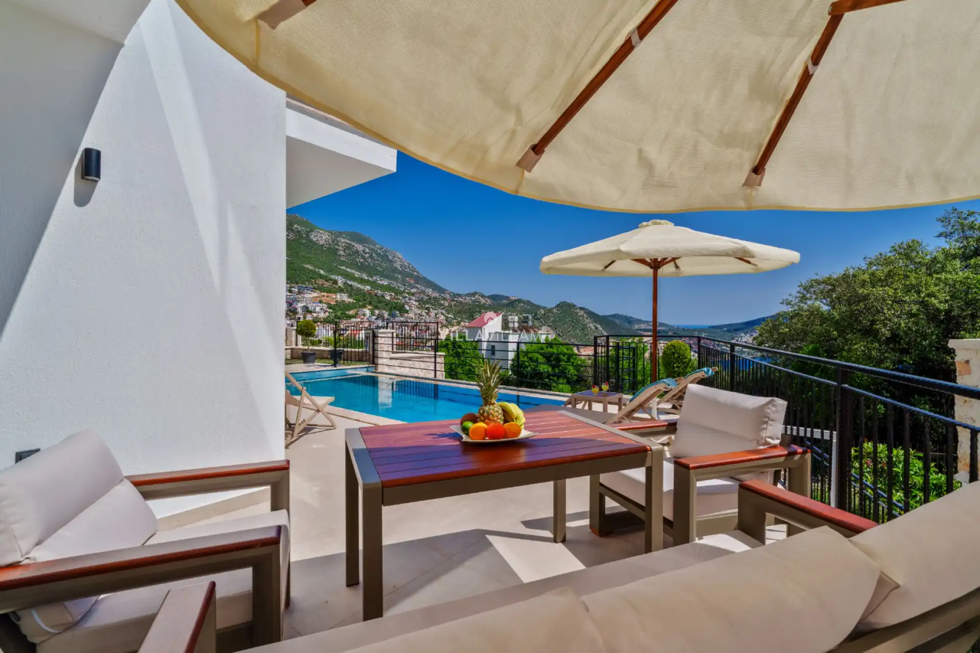 Kalkan Kızıltaş bölgesinde bulunan villa, 3 yatak odasıyla 6 kişilik konaklama kapasitesi sunmaktadır. Geniş havuz alanına sahip villa kalabalık aileler ve arkadaş grupları için uygundur.