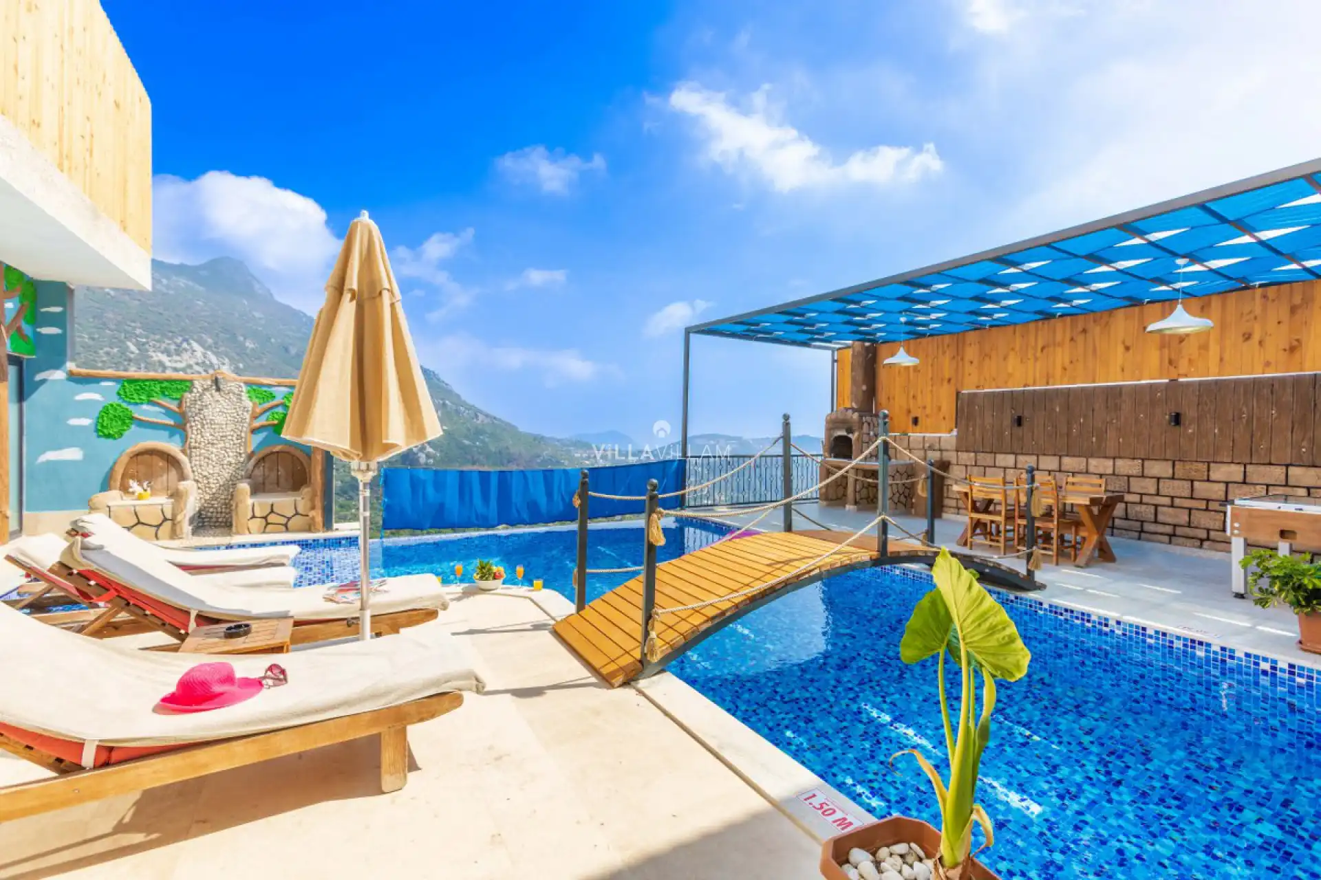 Kalkan İslamlar bölgesinde konumlandırılan villamız 2 yatak odasıyla 4 kişilik konaklama kapasitesi sunmaktadır. Korunaklı havuz alanına sahip villamız özellikle balayı çiftlerinin renkli bir tatil geçirebilmesi adına oldukça donanımlı özelliklere sahiptir.