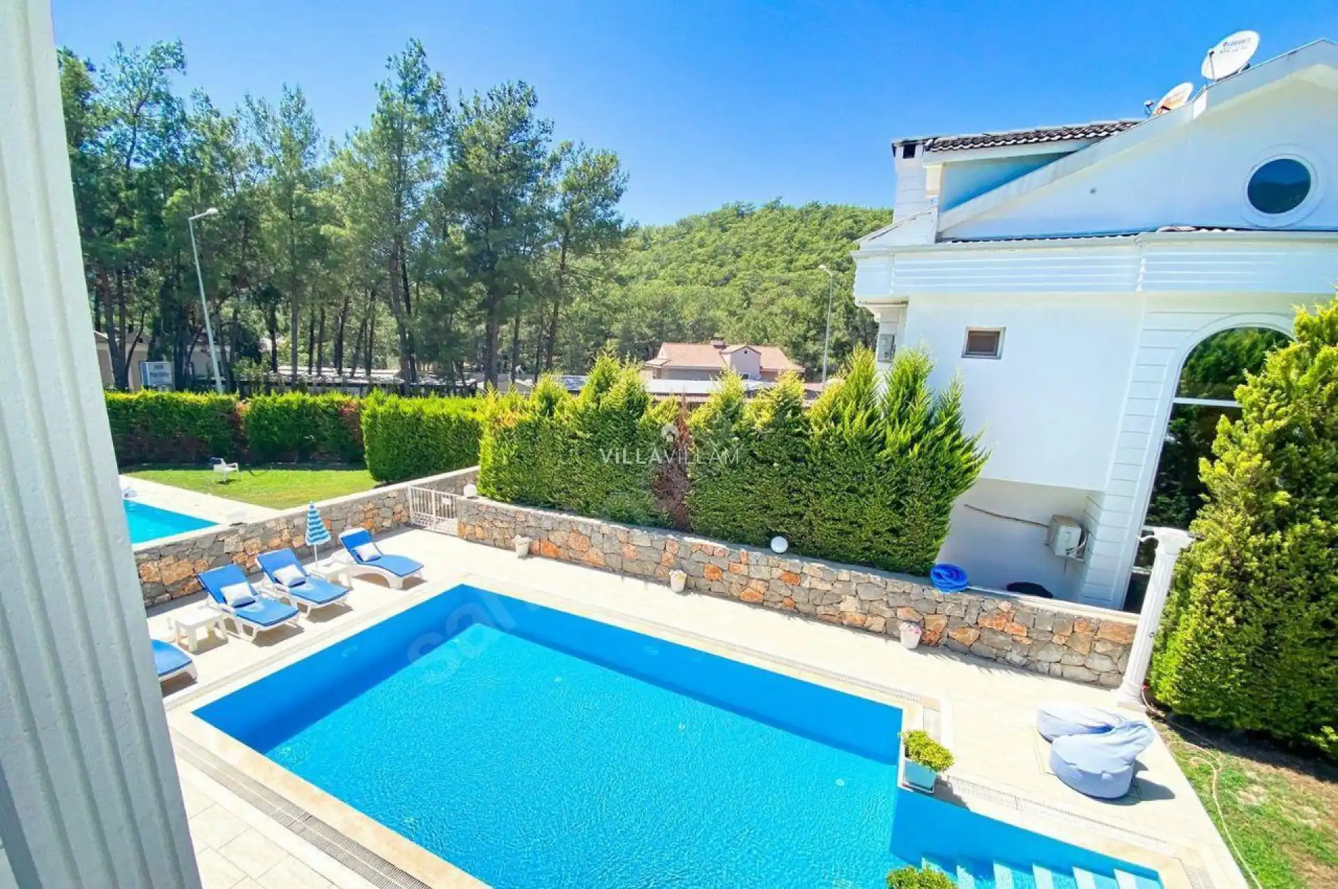 Sevdiklerinizle birlikte güvenli ve huzurlu bir tatilin keyfini sürebileceğiniz, özenle tasarlanmış, yeşilin her tonuyla karşılaşabileceğiniz villanın havuz terasında şezlong takımı, oturma grubu, salıncak ve barbekü alanı bulunmaktadır. İç mekânda ise özenle dizayn edilmiş konforlu bir oturma odası ve donanımlı açık mutfak; dört yatak odasında da çift kişilik yatak ve ebeveyn banyosu bulunmaktadır.