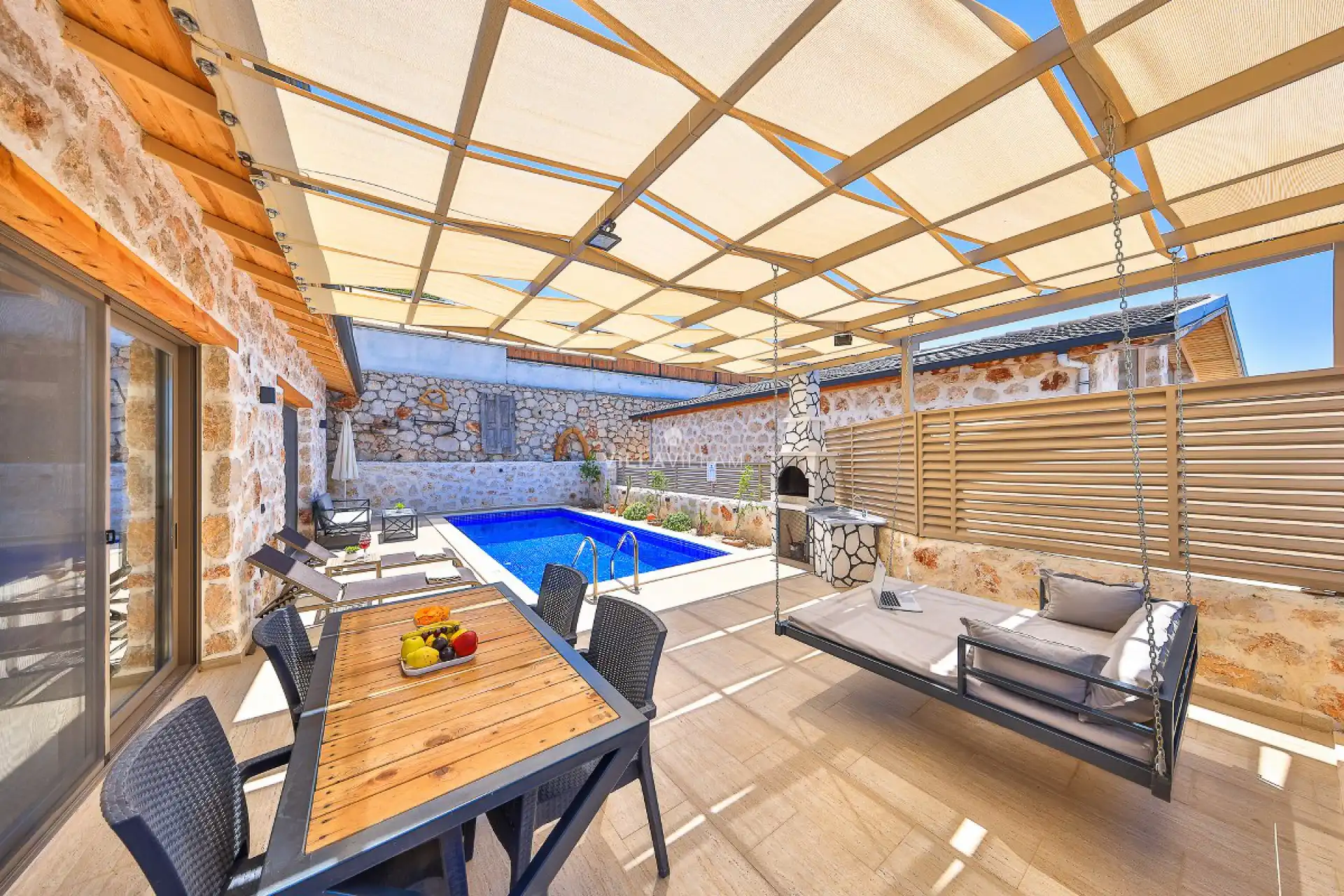 Kalkan Yeşilköy bölgesinde bulunan villa, 1 yatak odasıyla romantik bir konaklama deneyimi sunuyor. Balayı çiftleri için adeta bir cennet olan bu özel villa, doğayla iç içe, sevdiklerinizle birlikte güvenli ve huzurlu bir tatilin tadını çıkarmanız için tasarlandı.