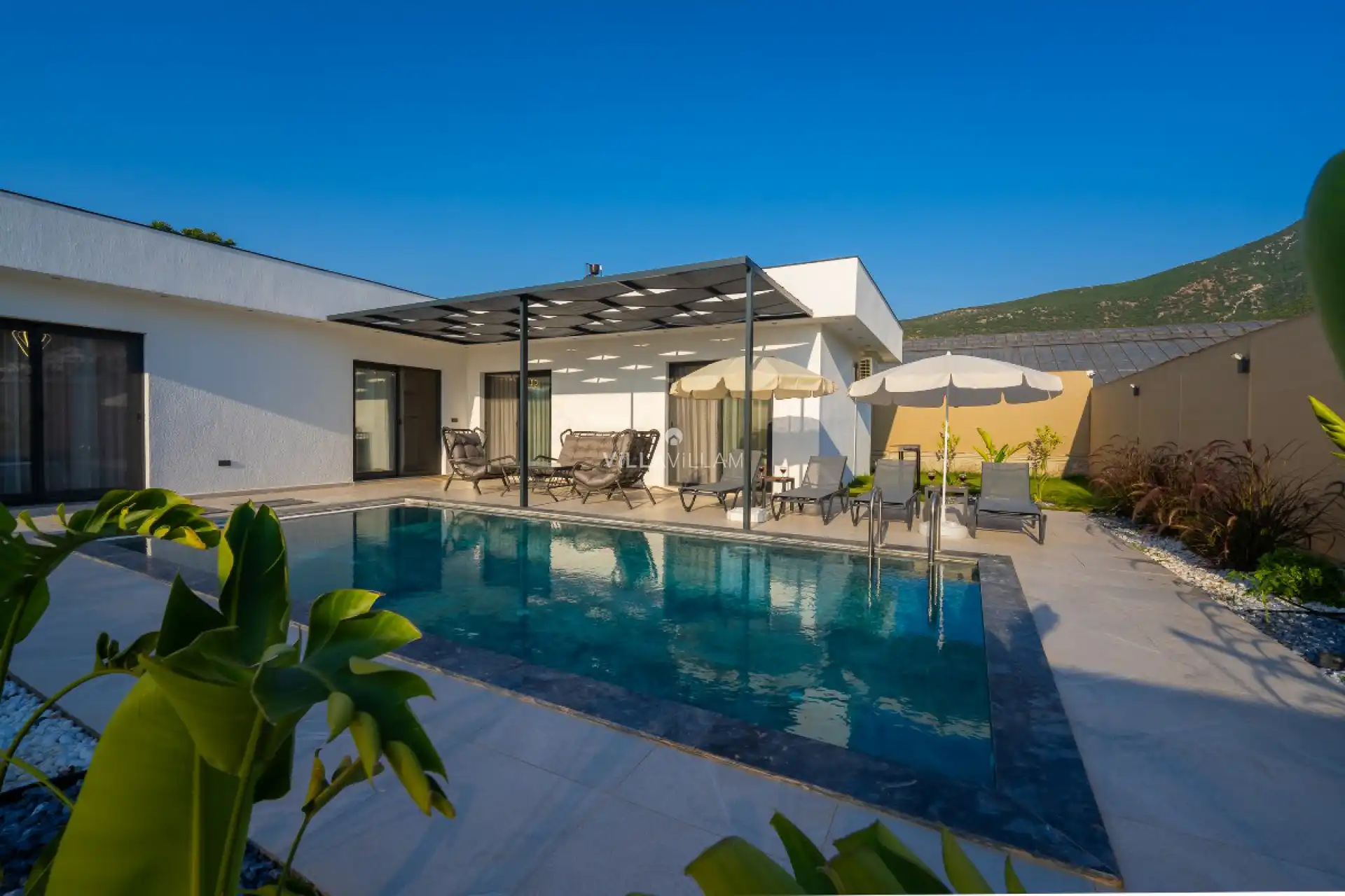 Fethiye Patlangıç bölgesinde bulunan villa 2 yatak odasıyla 4 kişilik konaklama kapasitesi sunmaktadır. Geniş havuz ve bahçe alanı ile dikkat çeken villa; balayı çiftleri ve çekirdek aileler için uygundur.