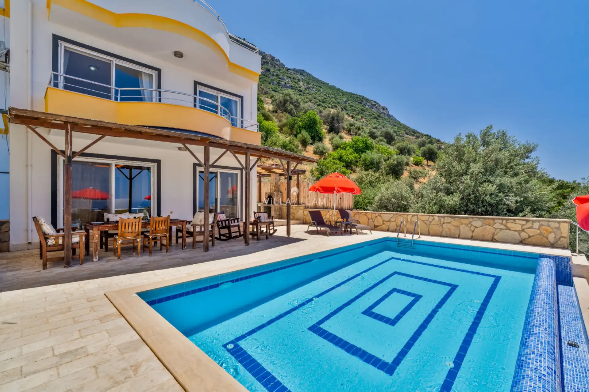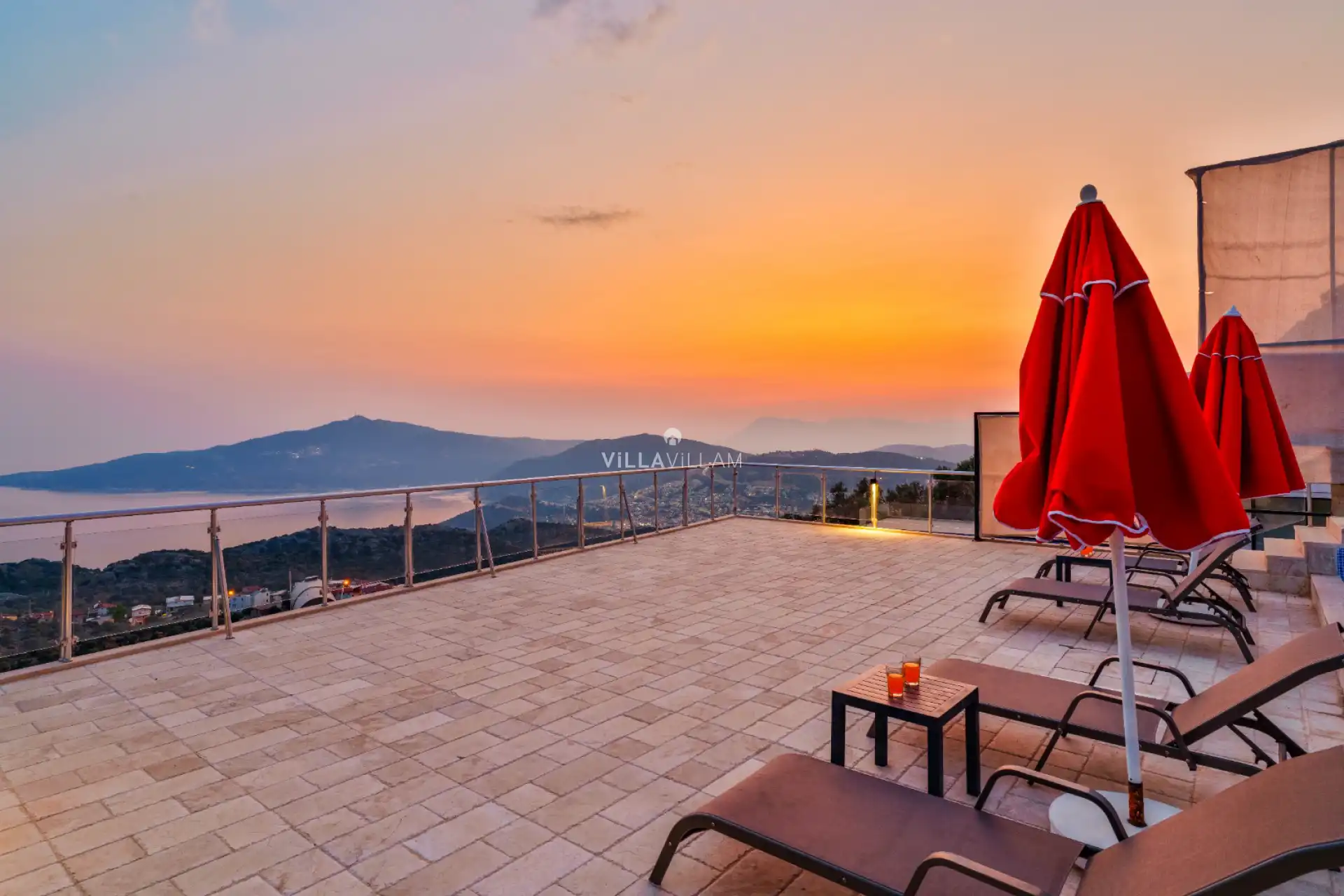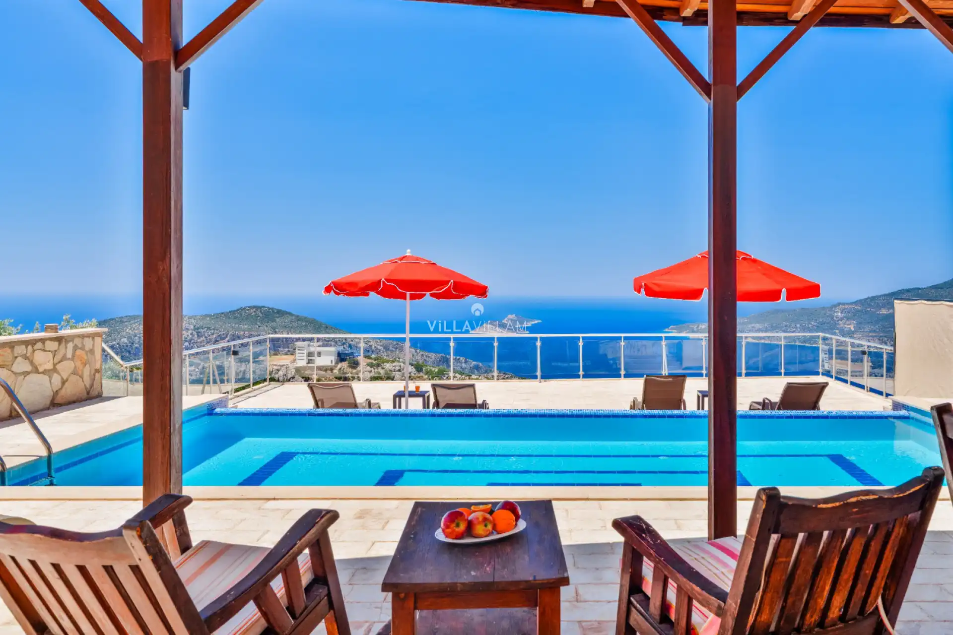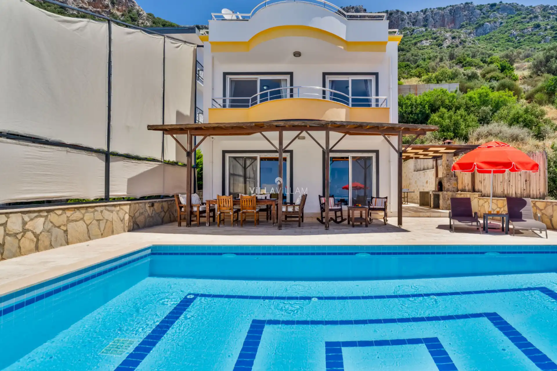 Eşsiz deniz manzarasının ve doğanın içinde modern tasarımı ile dikkatleri üzerine çeken, sevdiklerinizle birlikte güvenli ve huzurlu bir tatilin keyfini sürebileceğiniz, özenle tasarlanmış, yeşilin ve mavinin her tonu ile karşı karşıya kalacağınız villanın havuz terasında kapasiteye uygun şezlong takımı, oturma grubu ve barbekü alanı bulunmaktadır. Sahip olduğu manzara ile sevdikleriniz ve ailenizle muhteşem gün batımları, keyifli tatil anıları biriktirmenize olanak sunmaktadır. İlk yatak odasında çift kişilik yatak, ebeveyn banyosu ve jakuzi; ikinci yatak odasında çift kişilik yatak ve banyo; üçüncü yatak odasında iki adet tek kişilik yatak ve ebeveyn banyosu; dördüncü yatak odasında iki tek kişilik yatak ebeveyn banyosu bulunmaktadır.