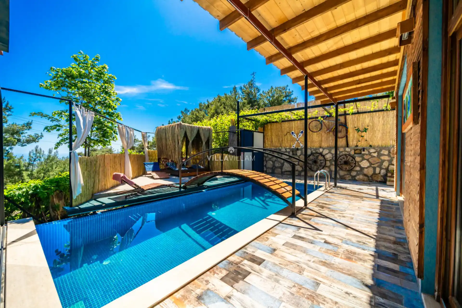 Kalkan İslamlar mevkiinde bulunan villa 2 yatak odası ile 4 kişilik konaklama kapasitesi sunmaktadır. Jakuzi ve korunaklı havuz alanına sahip villa balayı çiftlerimiz ve çekirdek ailelerimizin tercihleri arasındadır.