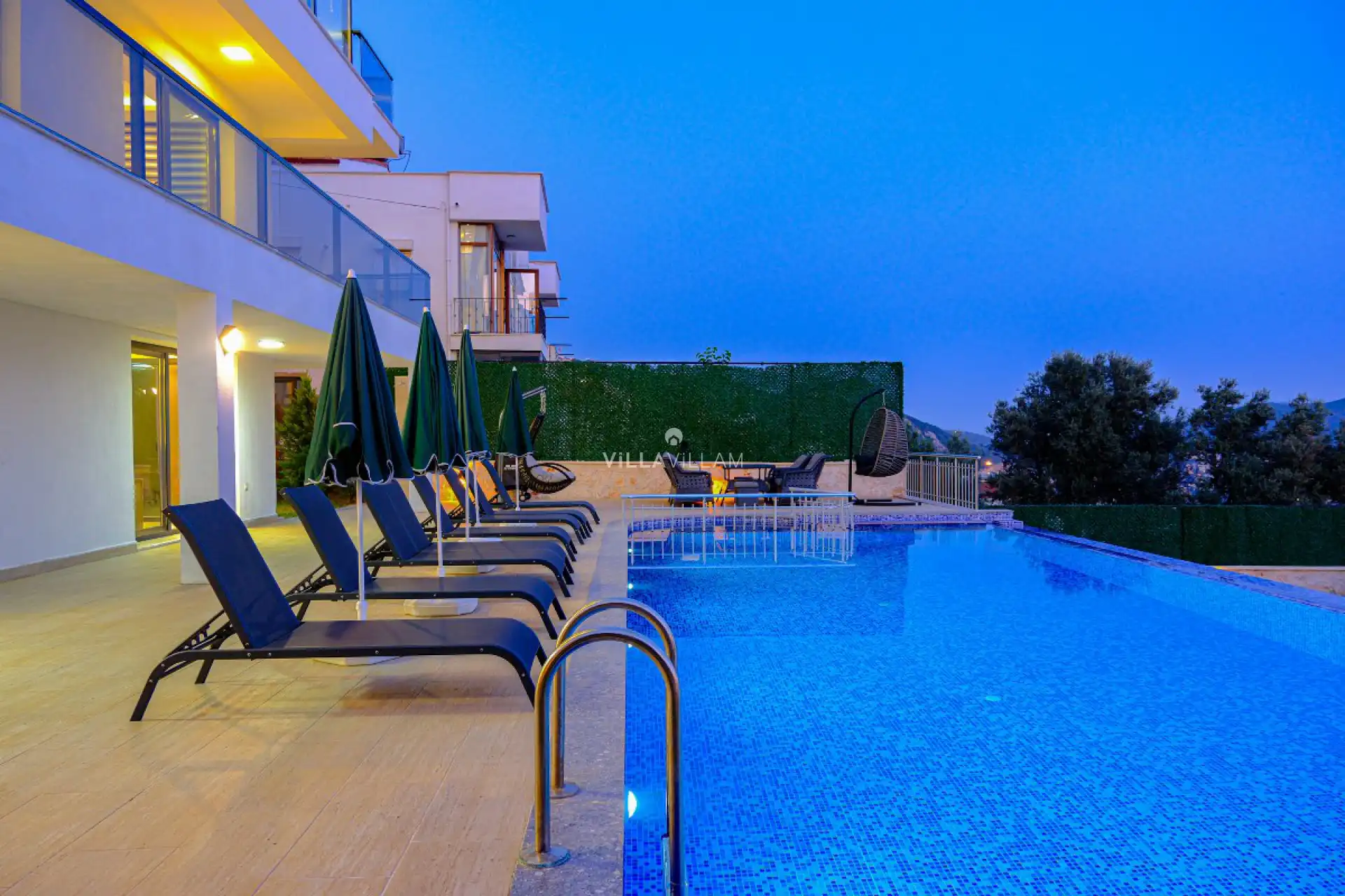 Kalkan Kızıltaş bölgesinde yer alan villa 7 yatak odasıyla 14 kişilik konaklama kapasitesi sunmaktadır. Merkeze yakın lokasyonu, geniş yapısı, deniz manzarası, çift jakuzisi ve daha bir çok ayrıcalığı ile dikkatleri üzerine çıkan villa, kalabalık aile ve arkadaş grupları için popüler seçenekler arasındadır .