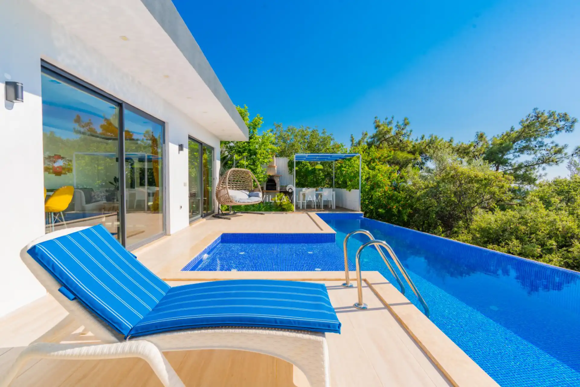 Geniş jakuzisi, konforlu mobilyaları ve ihtiyaç duyacağınız tüm detayların düşünüldüğü villamızın havuz alanı korunaklı olup, muhafazakâr tatil beklentisine yeterli cevabı verebilmektedir.