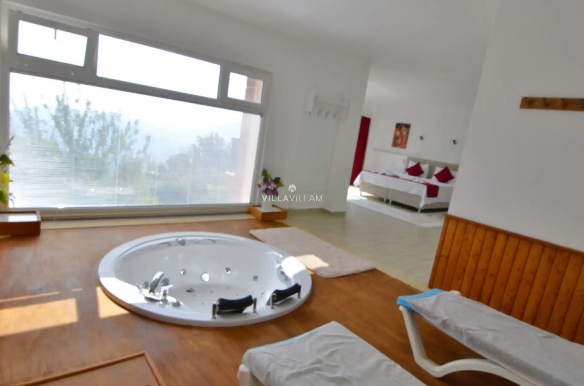 Doğa içinde sakin bir konuma sahip olan villa, havuz terasında kapasiteye uygun şezlong takımı, oturma grubu ve barbekü alanı ile keyifli bir alana sahiptir. Geniş havuz ve bahçe alanına açılan konforlu oturma odası, tam donanımlı açık mutfağı; bir yatak odasında çift kişilik yatak, ebeveyn banyosu ve jakuzi; diğer yatak odasında da iki tek kişilik yatak bulunmaktadır. Korunaklı havuz alanına ve geniş bahçeye sahip olan villa, tüm ihtiyaçlarınıza cevap verecek donanıma sahiptir.