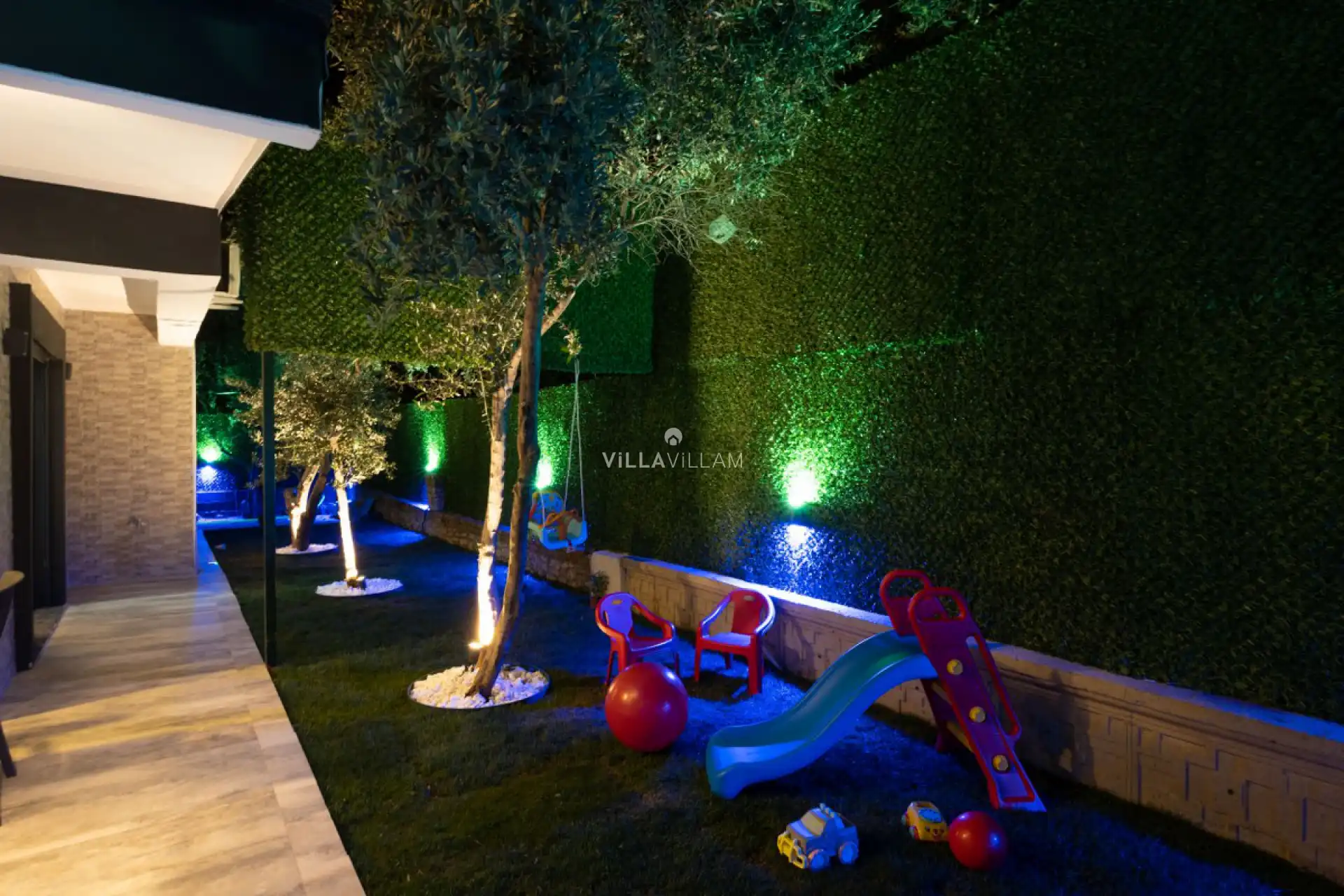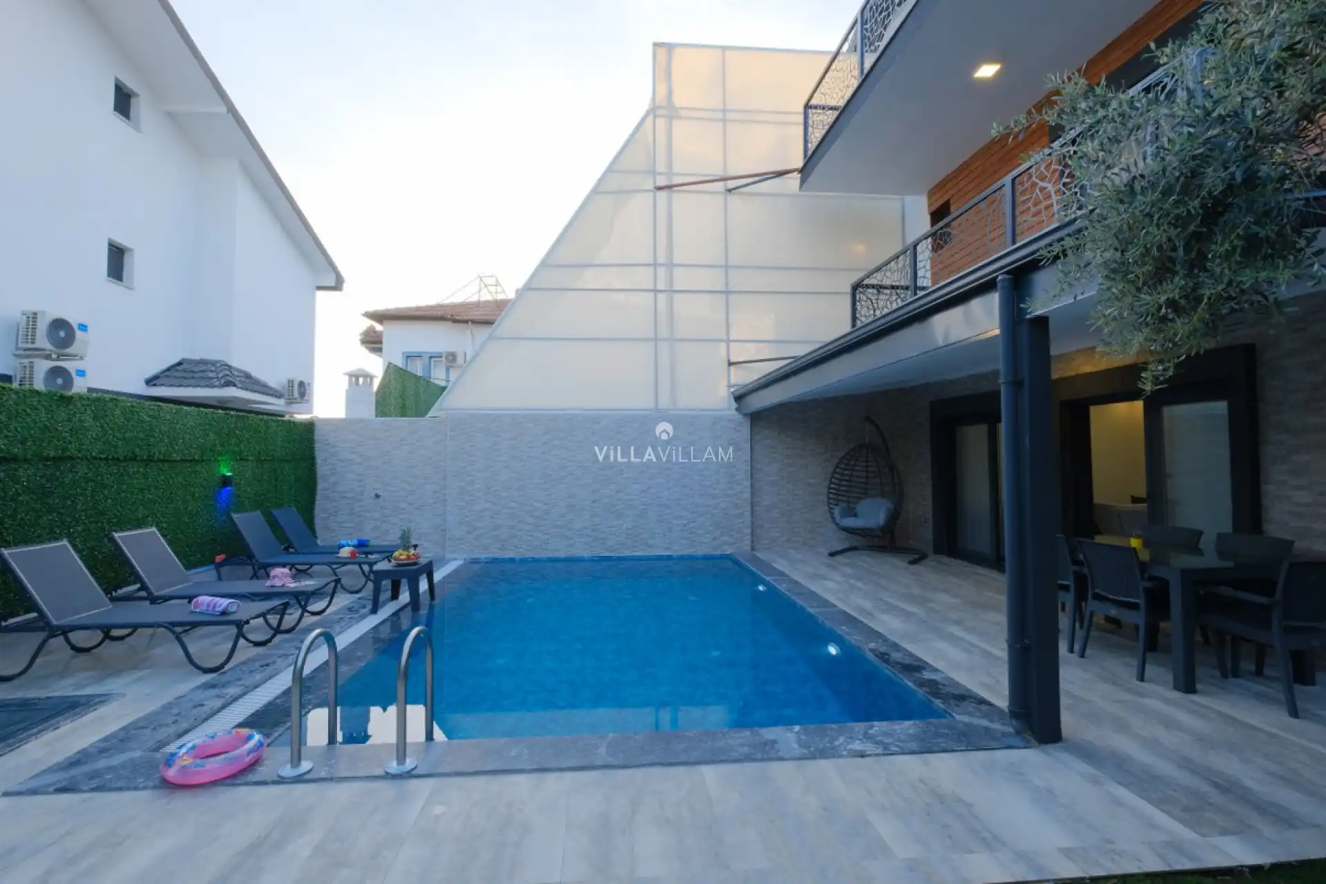 Merkezi noktalara rahat ulaşabileceğiniz, sevdiklerinizle birlikte güvenli ve huzurlu bir tatilin keyfini sürebileceğiniz, güneşin ve temiz havanın tadına doyacağınız villanın havuz terasında şezlong takımı, oturma grubu, salıncak ve barbekü alanı bulunmaktadır. Yine havuz terasına açılan konforlu oturma odası ve açık mutfağı; birinci yatak odasında çift kişilik yatak ve ebeveyn banyosu, ikinci yatak odasında çift kişilik yatak ve banyo, diğer odasında ise iki tek kişilik yatak ve ebeveyn banyosu bulunmaktadır.