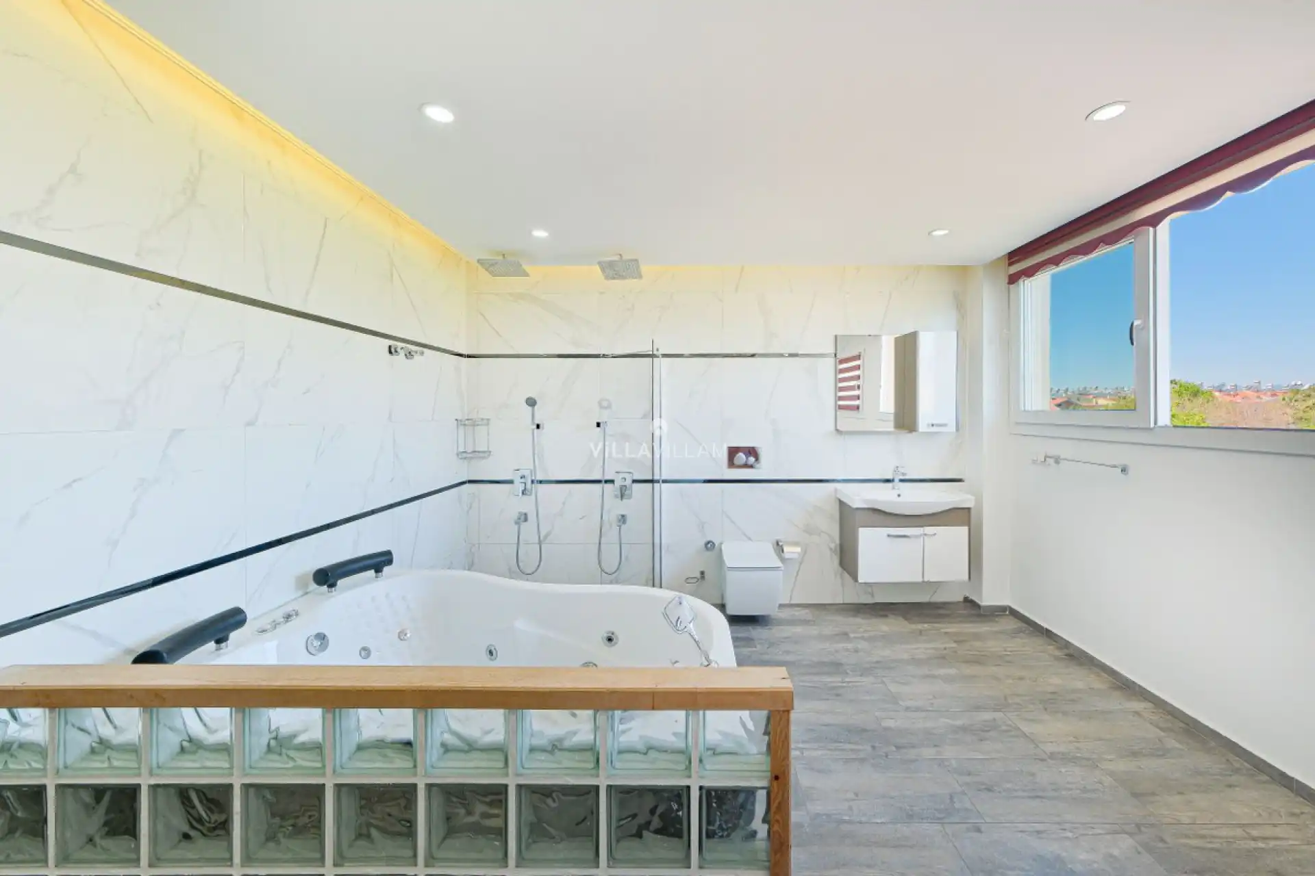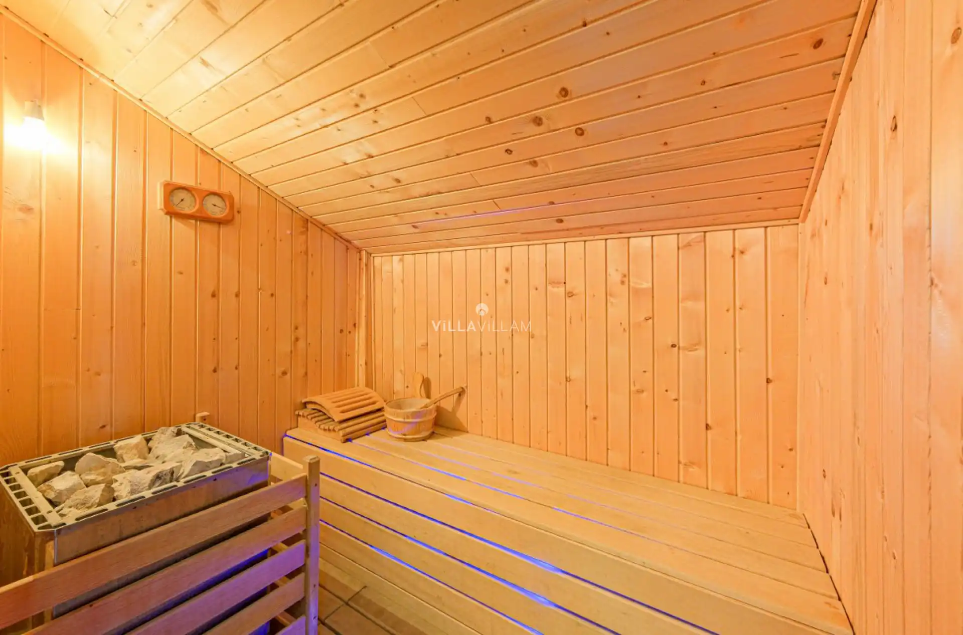 Villamızda sauna ayrıca açılır-kapanır havuz terası ile tatil keyfinizin ikiye katlanacağı, merkezi noktalara rahat ulaşabileceğiniz, sevdiklerinizle birlikte güvenli ve huzurlu bir tatilin keyfini sürebileceğiniz, güneşin ve temiz havanın tadına doyacağınız villanın havuz terasında şezlong takımı, oturma grubu, salıncak ve barbekü alanı bulunmaktadır. Yine havuz terasına açılan konforlu oturma odası ve açık mutfağı; birinci yatak odasında çift kişilik yatak, jakuzi, ebeveyn banyosu; ikinci yatak odasında çift kişilik yatak ve banyo; üçüncü yatak odasında ise iki tek kişilik yatak ve banyo bulunmaktadır.