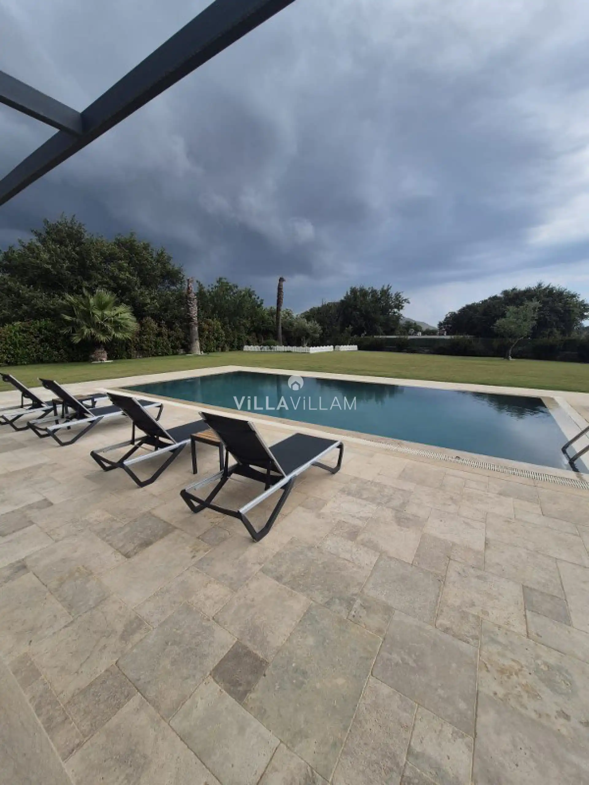 Konumu sayesinde tercihlerin başında gelen villanın oldukça ferah ve geniş bahçe alanında oturma grubu, şezlong takımı ve barbekü alanı yer almaktadır. Size evinizdeymiş gibi hissettirecek konforlu oturma odası ve donanımlı mutfağı; birinci yatak odasında çift kişilik yatak ve ebeveyn banyosu; ikinci yatak odasında tek kişilik yatak ve ortak banyo; üçüncü yatak odasında da çift kişilik yatak ve ortak banyo; ek binada bulunan dördüncü yatak odasında çift kişilik yatak ve ebeveyn banyosu bulunmaktadır. İç mekan yapısı ve donanımları da en az dış mekan kadar ferah, modern ve konforunuz ön planda tutularak oluşturulmuştur.