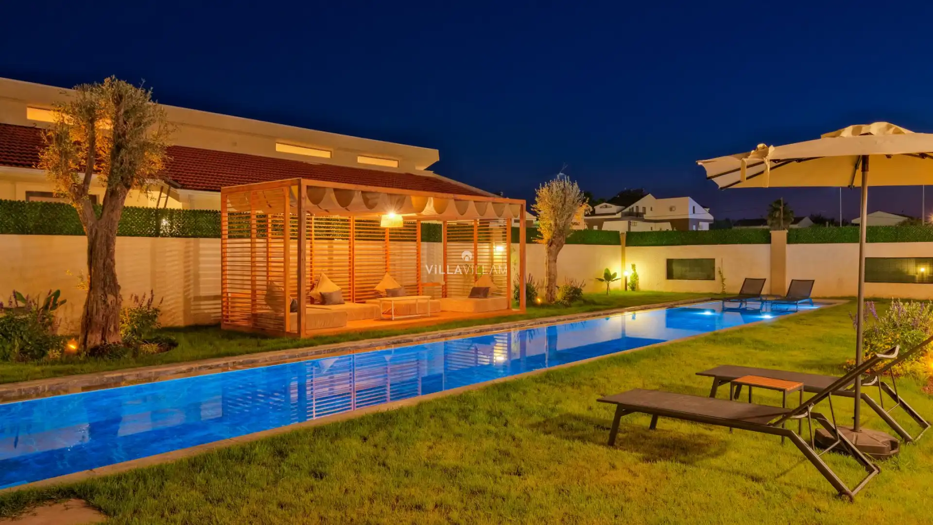 Doğa içinde bulunan villada kapasiteye uygun oturma alanı, şezlong takımı, barbekü alanı ve salıncak; havuz terasına açılan konforlu oturma odası, ihtiyaçlarınızı karşılayacak donanımlı mutfağı bulunmaktadır. Bir yatak odasında çift kişilik yatak, ebeveyn banyosu, jakuzi; diğer yatak odasında iki tek kişilik yatak ve ebeveyn banyosu bulunmaktadır. Şık ve konforu bir arada sunan villa ayrıca 20 Metre uzunluğunda olan bir havuza sahip olup çamaşır kurutma makinesi gibi donanım avantajlarıyla da ön plana çıkmaktadır.