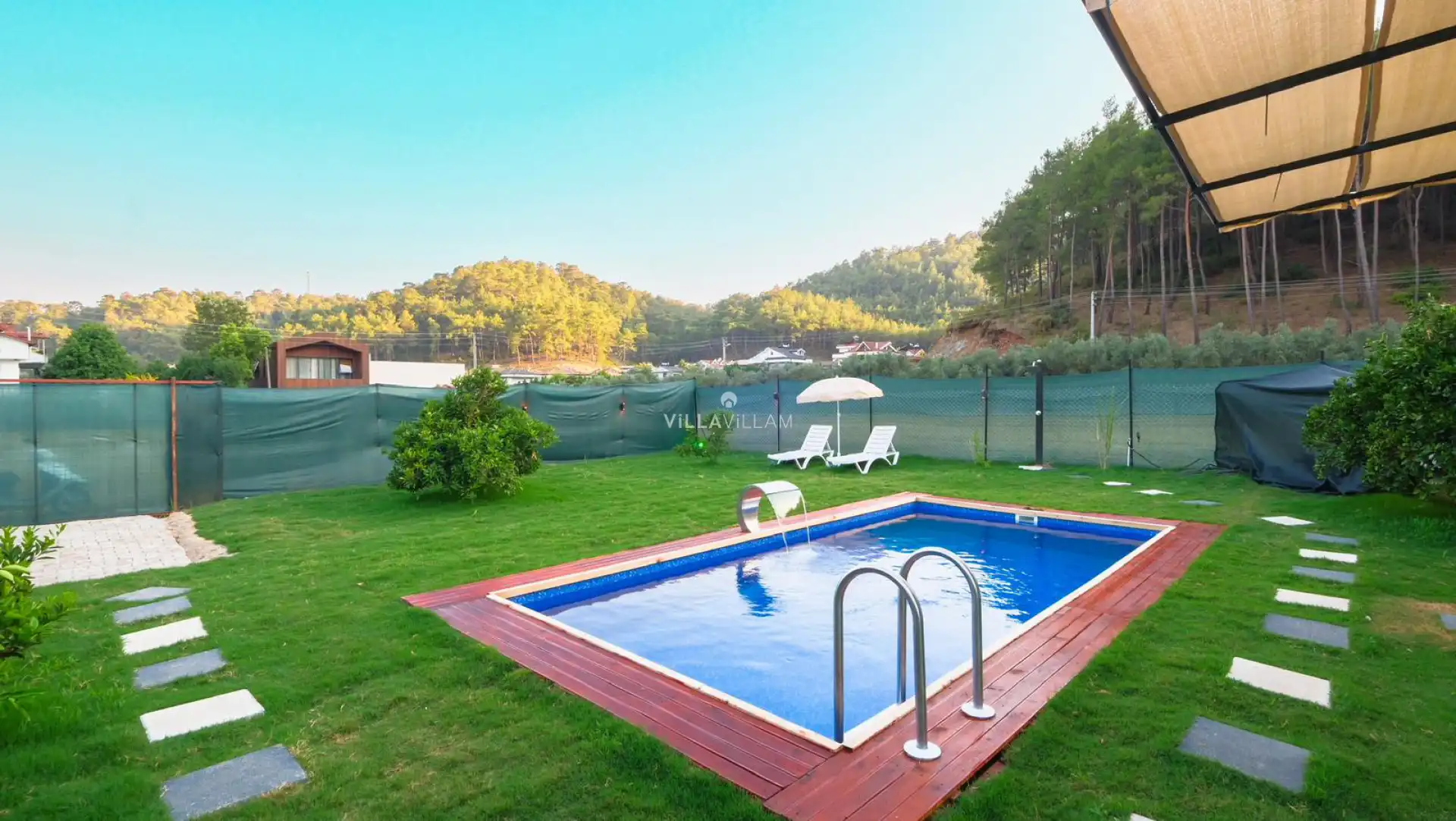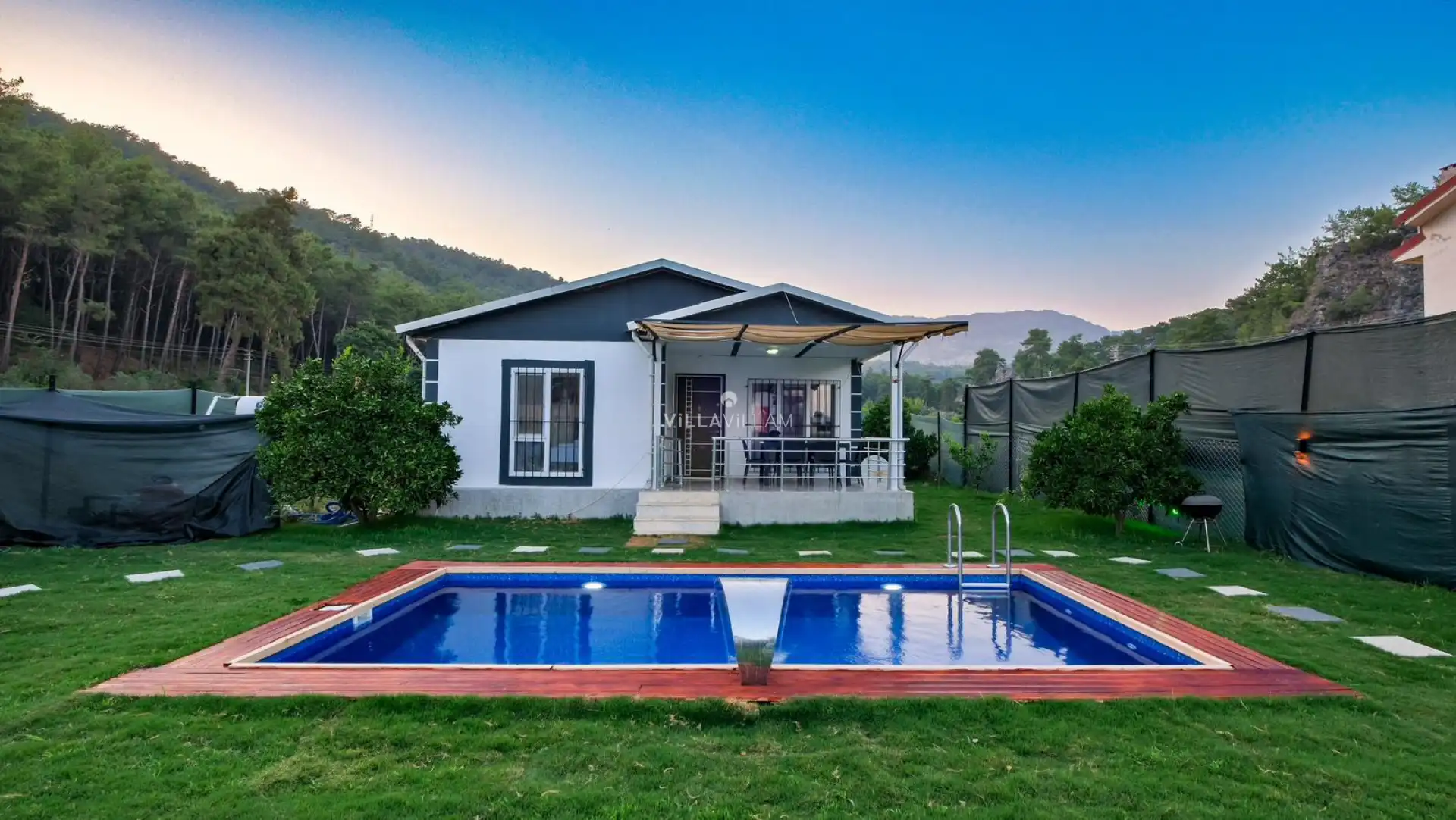 Tüm yılın yorgunluğundan sıyrılabileceğiniz villamız şehir kargaşasından uzak unutulmayacak bir tatil deneyimi vadetmektedir. Yorgunluğunuzu ve stresinizi geride bırakacağınız, sevdikleriniz ve aileniz ile unutulmayacak anılar biriktirebileceğiniz geniş yemyeşil bahçe alanı ve havuz alanında şezlong takımı, oturma grubu bulunmaktadır. İç mekanda tüm ihtiyaçlarınız için konforlu oturma odası ve donanımlı açık mutfağı; birinci yatak odasında da çift kişilik yatak, ikinci yatak odasında iki tek kişilik yatak ve banyo bulunmaktadır.