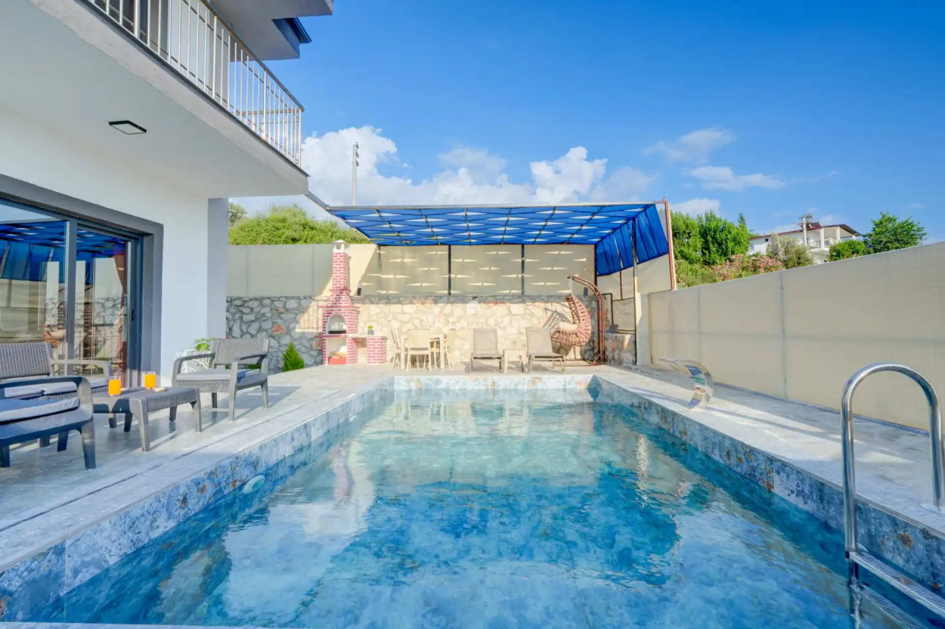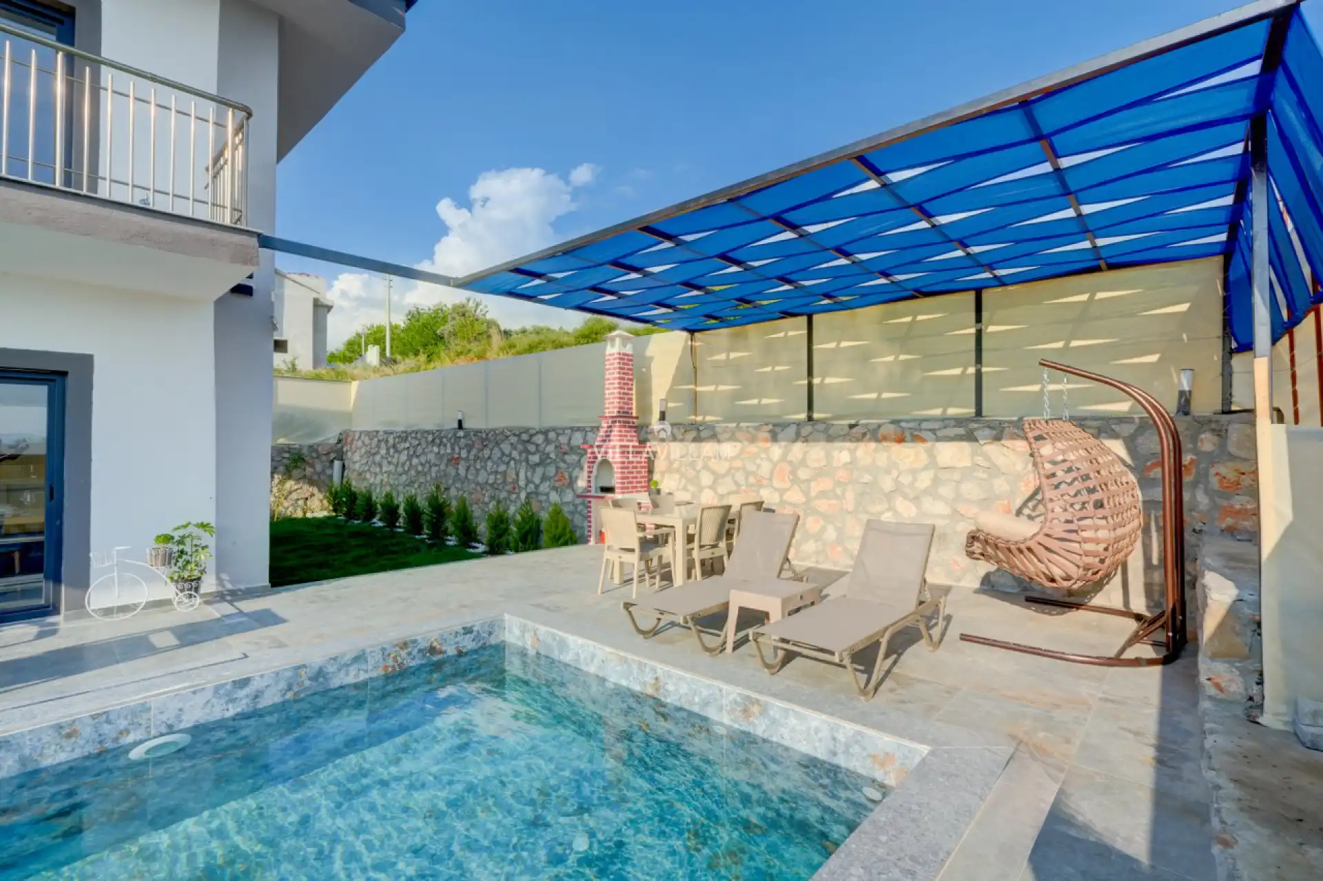 Fethiye Seydikemer Döğer bölgesinde bulunan villa 2 yatak odasıyla 4 kişi konaklama kapasitesi sunmaktadır. Korunaklı yapısı ve jakuzisi ile dikkat çeken villa balayı çiftleri ve çekirdek aileler için idealdir.