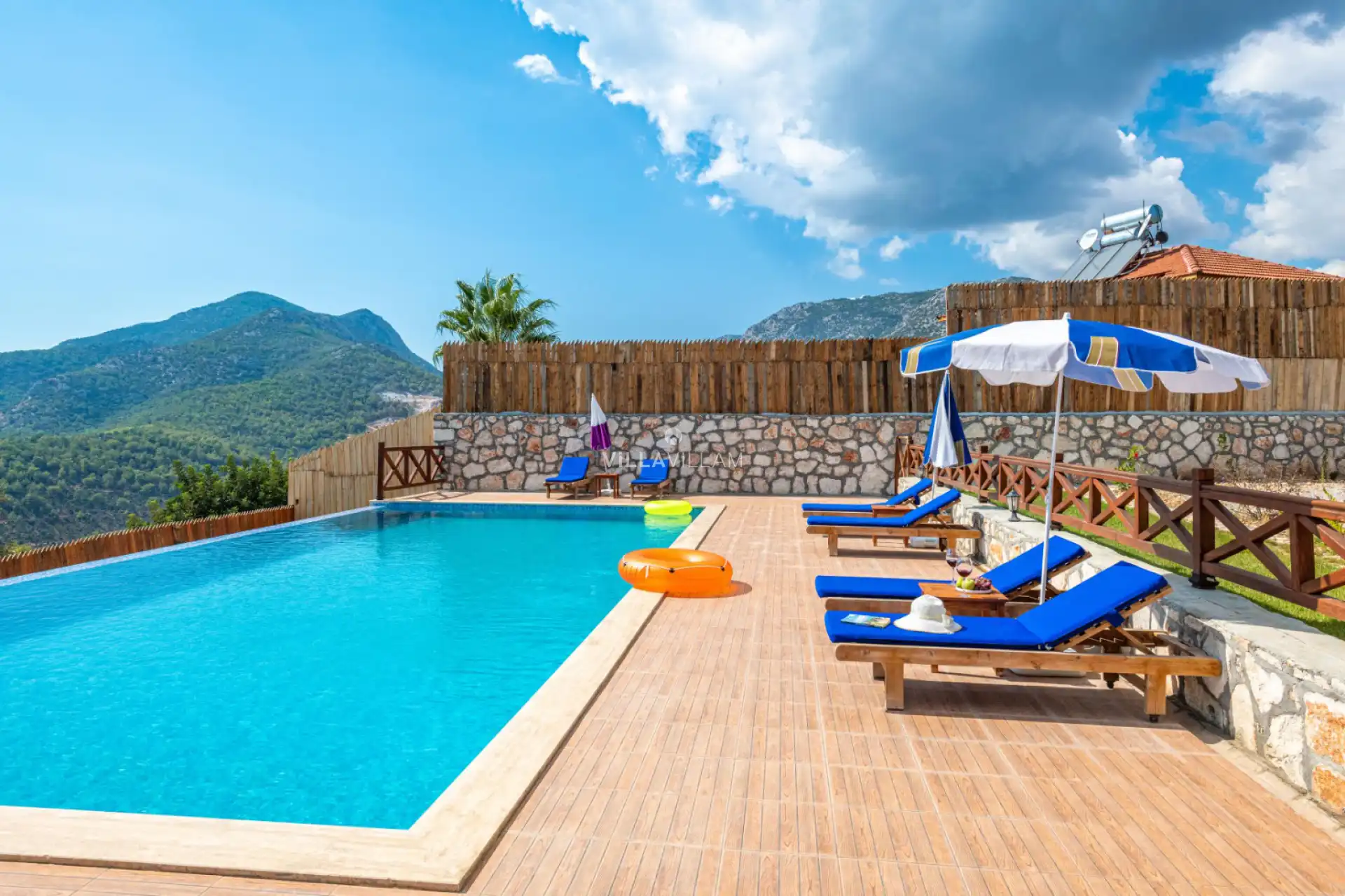 Kalkan Patara bölgesinde bulunan villa, 3 yatak odasıyla 6 kişilik konaklama kapasitesi sunmaktadır, kalabalık aile ve arkadaş grupları için uygundur.