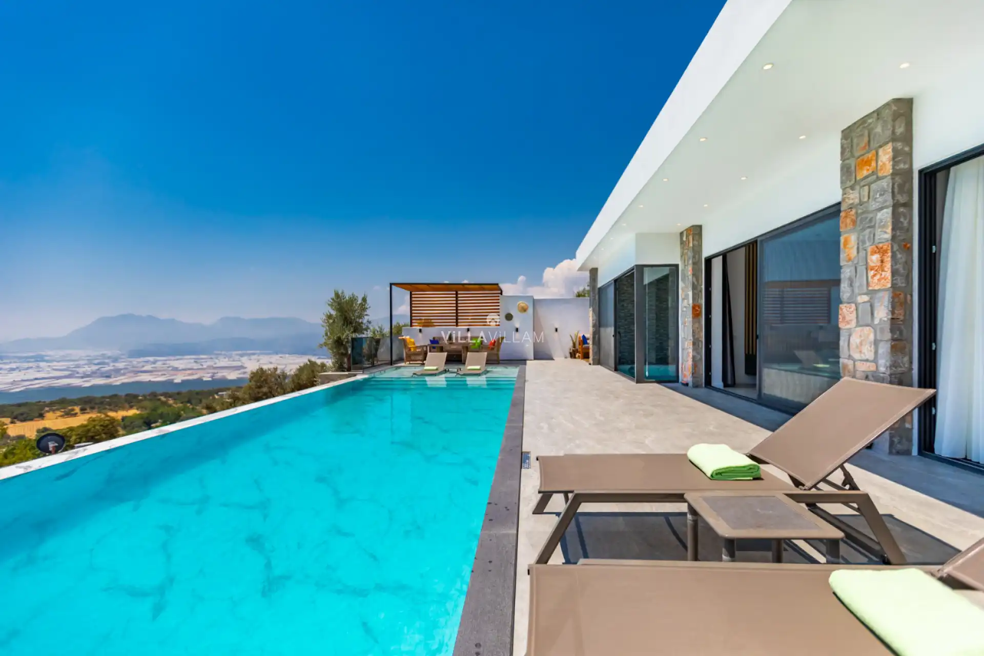 Kalkan Üzümlü bölgesinde deniz ve doğa manzaralı villamız 2 adet suit yatak odasıyla 4 kişilik konaklama kapasitesi sunmaktadır. Bir yatak odasında çift kişilik yatak, diğer yatak odasında ise birleştirilebilir sisteme sahip iki tek kişilik mevcuttur.