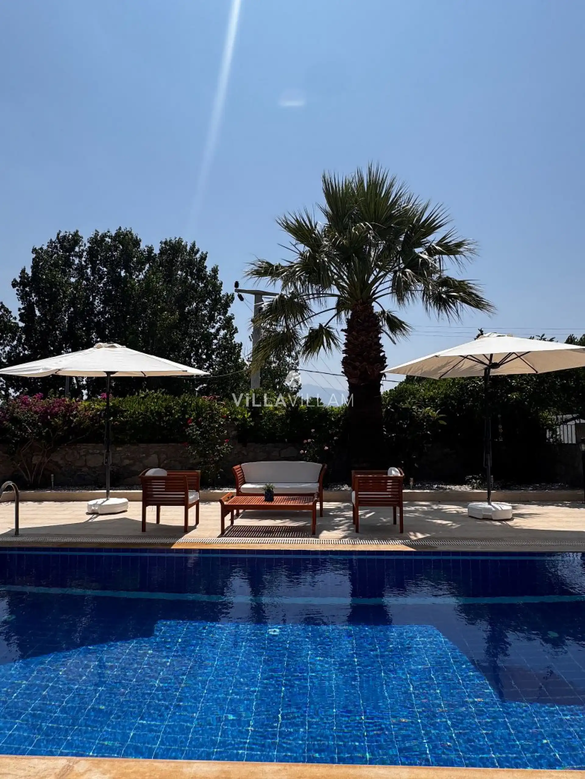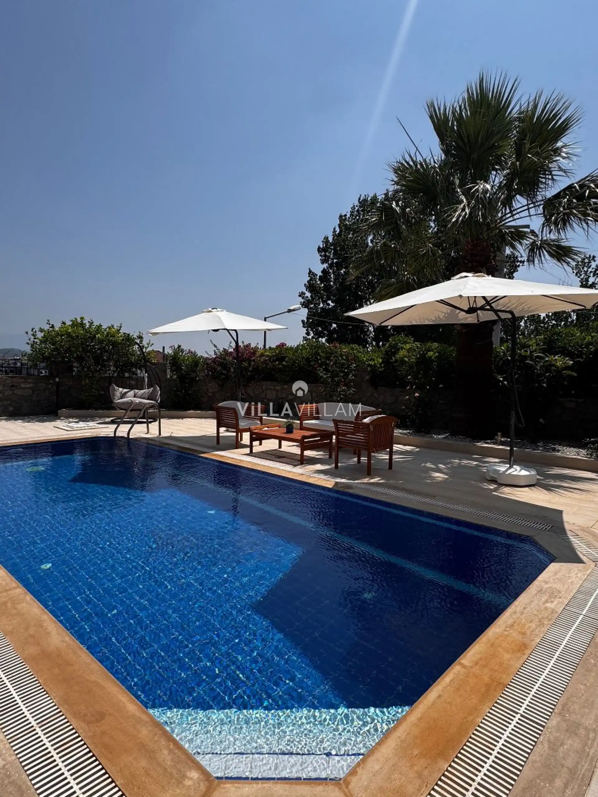 Özel tasarlanmış havuz terasında, konaklama kapasitesine uygun şezlong takımı, rahat bir oturma grubu ve barbekü alanı yer almaktadır. Havuz alanı, keyifli vakit geçirmek ve dinlenmek için mükemmel bir ortam sunar. İç mekanda ise konforlu oturma odası, tam donanımlı açık mutfağı; birinci yatak odasında çift kişilik yatak, jakuzi, ve ebeveyn banyosu; ikinci yatak odasında iki tek kişilik yatak; üçüncü yatak odasında çift kişilik yatak ve ortak banyo bulunmaktadır.