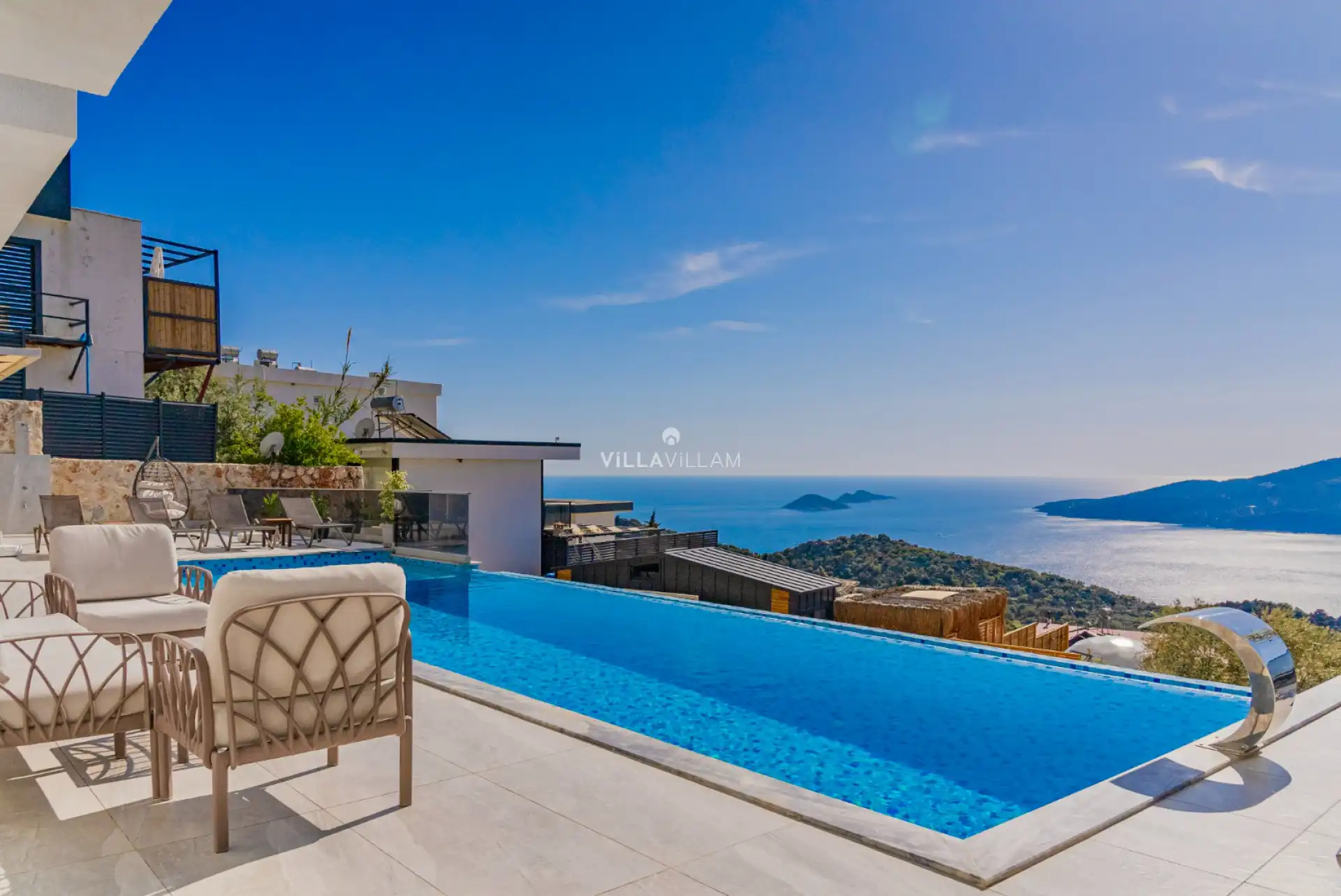 Kalkan da doğa ile iç içe, sevdiklerinizle birlikte güvenli ve huzurlu bir tatilin keyfini sürebileceğiniz villanın havuz terasında şezlong takımı, oturma grubu, barbekü alanı bulunmaktadır. Yine havuz terasına açılan konforlu oturma odası ve donanımlı açık mutfağı; birinci yatak odasında; çift kişilik yatak, ebeveyn banyosu ve jakuzi, ikinci yatak odasında çift kişilik yatak ve ebeveyn banyosu ,üçüncü yatak odasında;iki tek kişilik yatak ve ebeveyn banyosu,dördüncü yatak odasında;çift kişilik yatak ve ebeveyn banyosu bulunmaktadır.