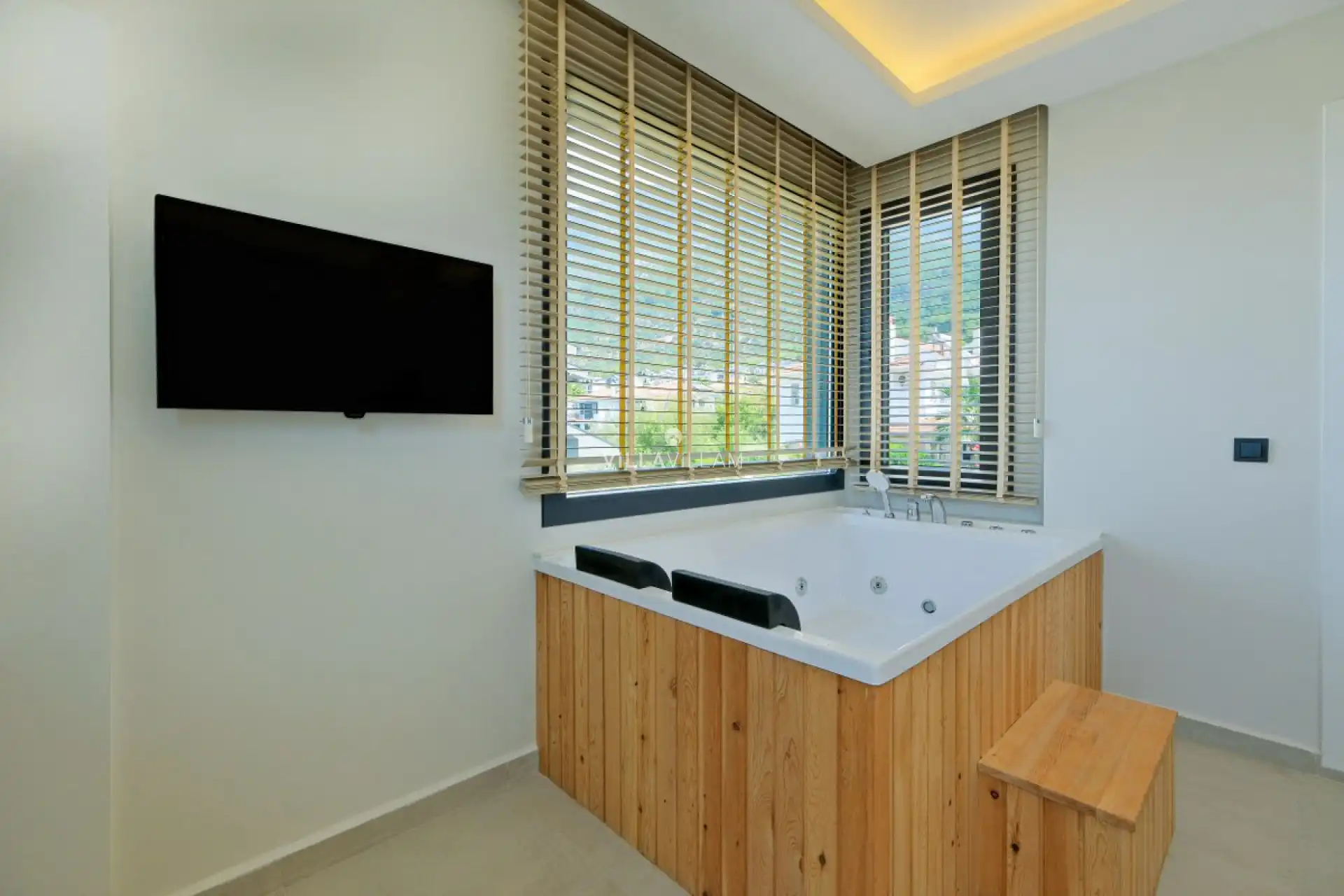 Fethiye'nin muhteşem doğasında şehir kargaşasından uzak ve sakin bir konuma sahip olan villa, havuz terasında şezlong takımı, oturma grubu ve barbekü alanı ile keyifli bir alana sahiptir. Geniş bahçe ve havuz alanına açılan konforlu oturma odası ve ihtiyaçlarınızı karşılayacak açık mutfağı; birinci yatak odasında çift kişilik yatak, jakuzi ve ebeveyn banyosu; ikinci yatak odasında bir çift kişilik yatak, jakuzi ve ebeveyn banyosu; üçüncü ve dördüncü yatak odasında iser iki tek kişilik yatak ve ebeveyn banyosu bulunmaktadır.