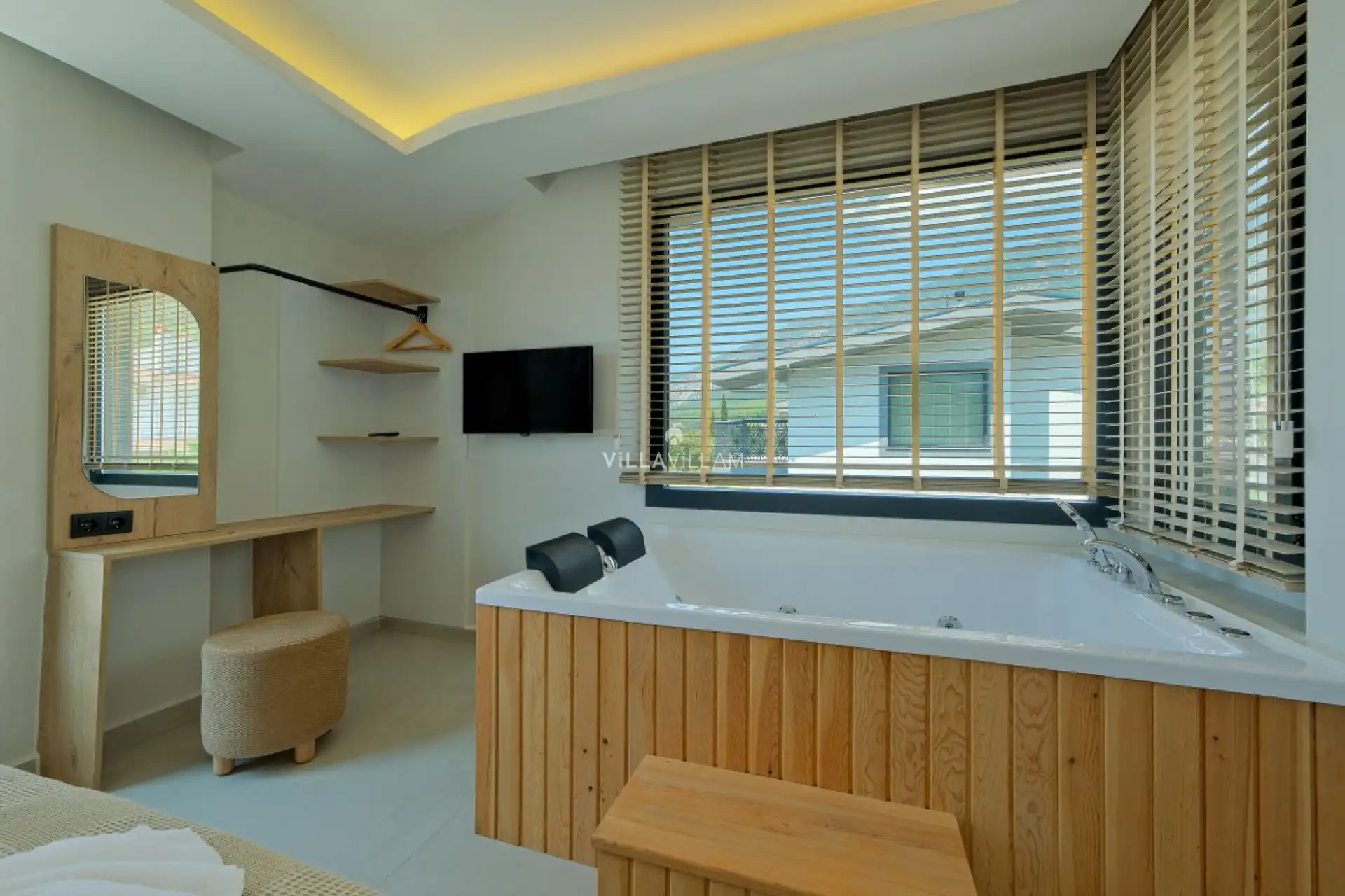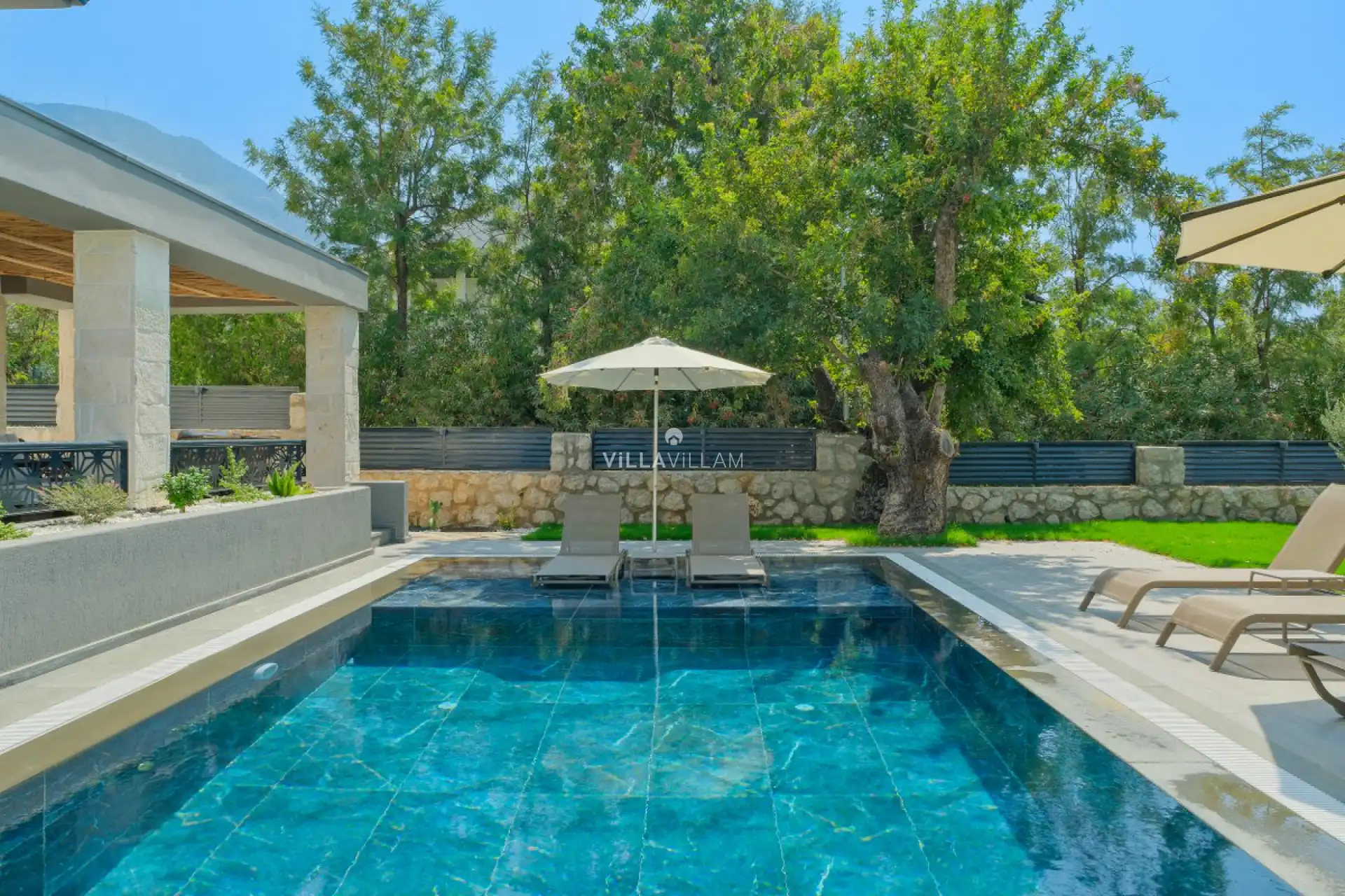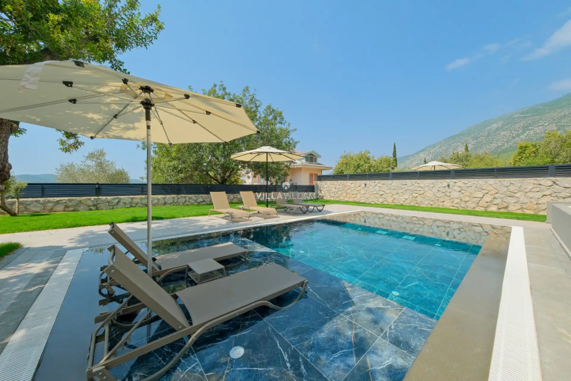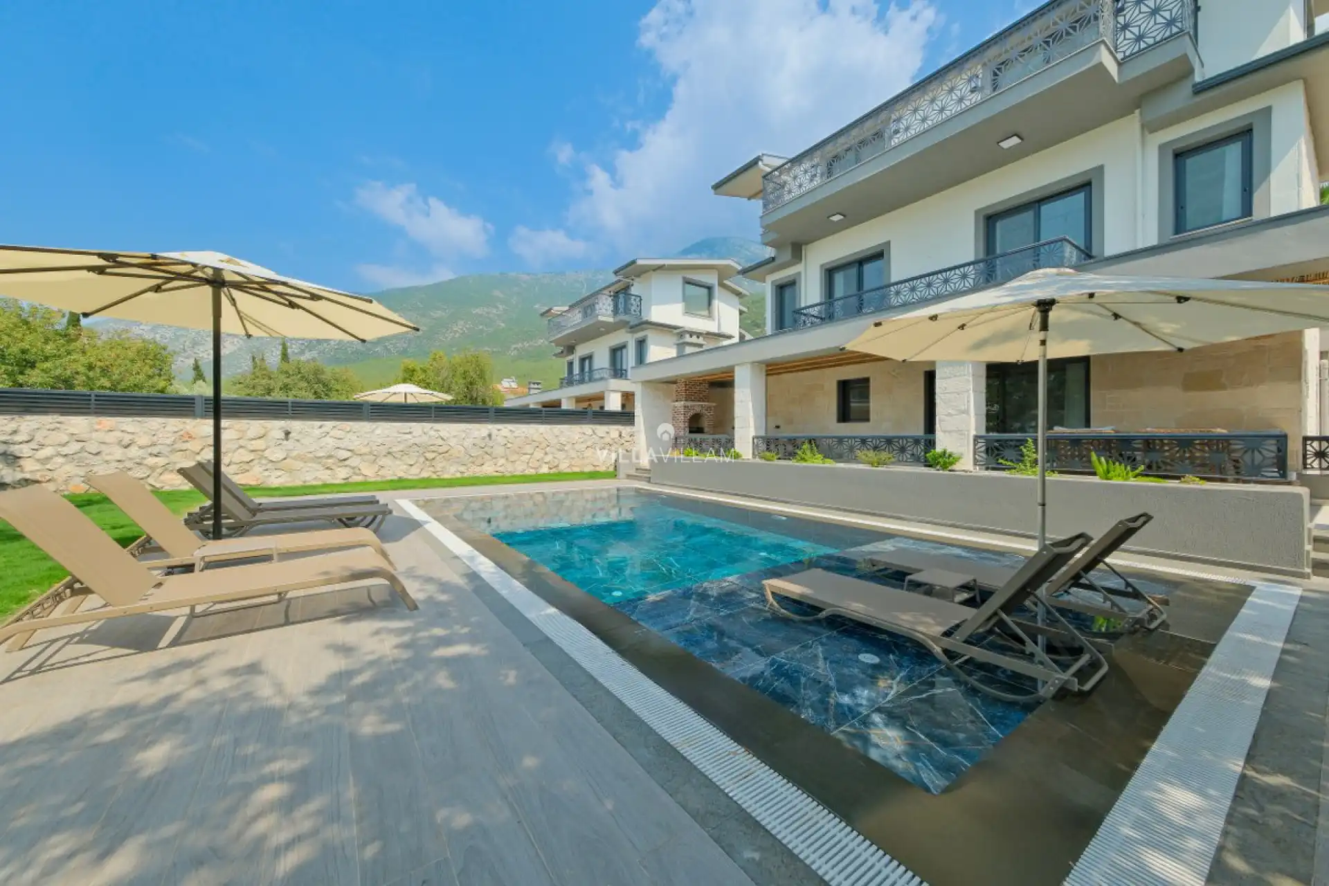 Fethiye'nin muhteşem doğasında şehir kargaşasından uzak ve sakin bir konuma sahip olan villa, havuz terasında şezlong takımı, oturma grubu ve barbekü alanı ile keyifli bir alana sahiptir. Geniş bahçe ve havuz alanına açılan konforlu oturma odası ve ihtiyaçlarınızı karşılayacak açık mutfağı; birinci yatak odasında çift kişilik yatak, jakuzi ve ebeveyn banyosu; ikinci yatak odasında bir çift kişilik yatak, jakuzi ve ebeveyn banyosu; üçüncü ve dördüncü yatak odasında iser iki tek kişilik yatak ve ebeveyn banyosu bulunmaktadır.