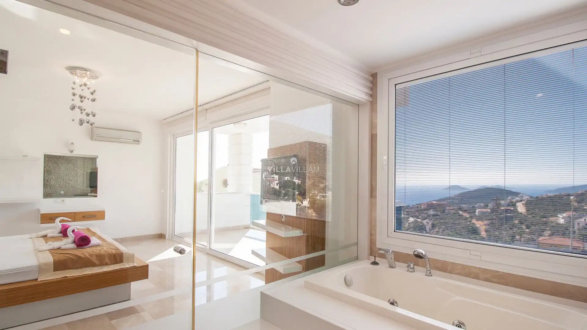 Eşsiz deniz manzarasının ve doğanın içinde modern tasarımı ile dikkatleri üzerine çeken, sevdiklerinizle birlikte güvenli ve huzurlu bir tatilin keyfini sürebileceğiniz, özenle tasarlanmış, yeşilin ve mavinin her tonu ile karşı karşıya kalacağınız villanın havuz terasında kapasiteye şezlong takımı, oturma grubu ve barbekü alanı bulunmaktadır. Tüm ihtiyaçlarınıza karşılık verecek konforlu oturma odası ve açık mutfağı; birinci yatak odasında çift kişilik yatak, ebeveyn banyosu ve jakuzi; ikinci yatak odasında bir çift kişilik yatak ve ebeveyn banyosu; üçüncü yatak odasında iki tek kişilik yatak ve ebevyn banyosu; dördüncü yatak odasında bir çift kişilik yatak ve banyo bulunmaktadır.