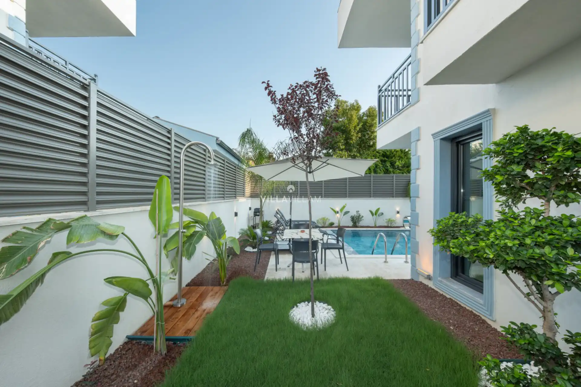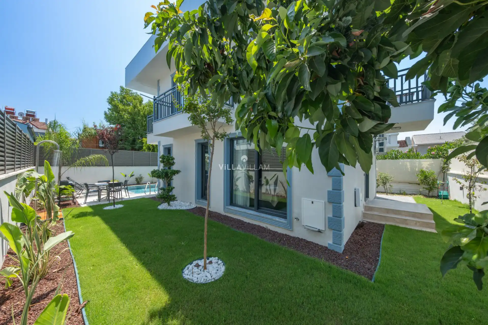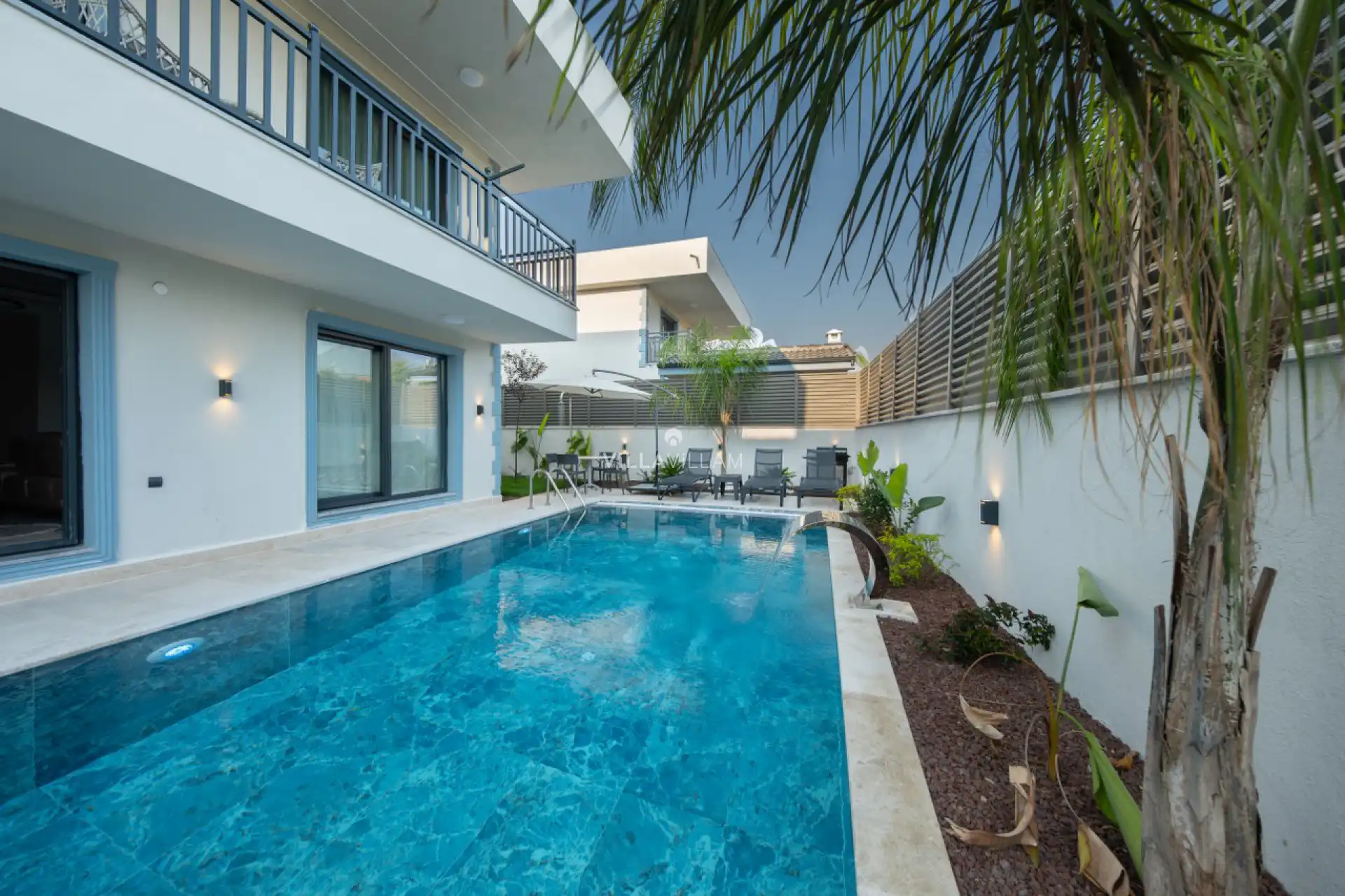 Sevdiklerinizle birlikte güneşin tadını çıkarabileceğiniz havuz ve bahçe alanında, konforunuz gözetilerek konumlandırılmış şezlong takımı, oturma grubu, salıncak ve barbekü alanı yer almaktadır. İç mekânda ise ferah ve konforlu bir dizayna sahip oturma odası ile tüm ihtiyaçlarınıza karşılık verecek donanımlı mutfak; birinci yatak odasında bir çift kişilik yatak ve ebeveyn banyosu; ikinci yatak odasında ise bir adet çift kişilik yatak ve ebeveyn banyosu; üçüncü yatak odasında ise iki tek kişilik yatak ve ortak banyo bulunmaktadır.