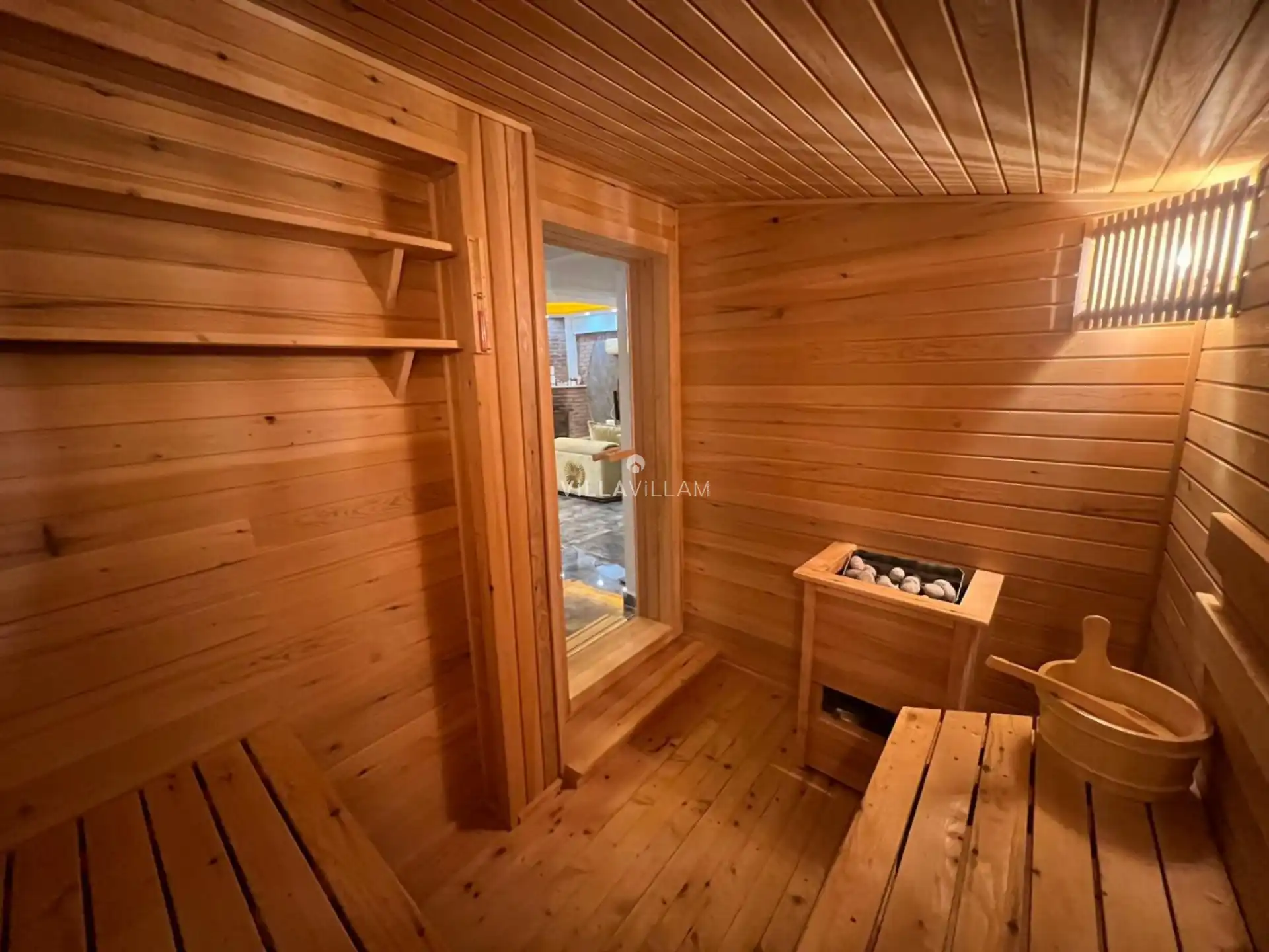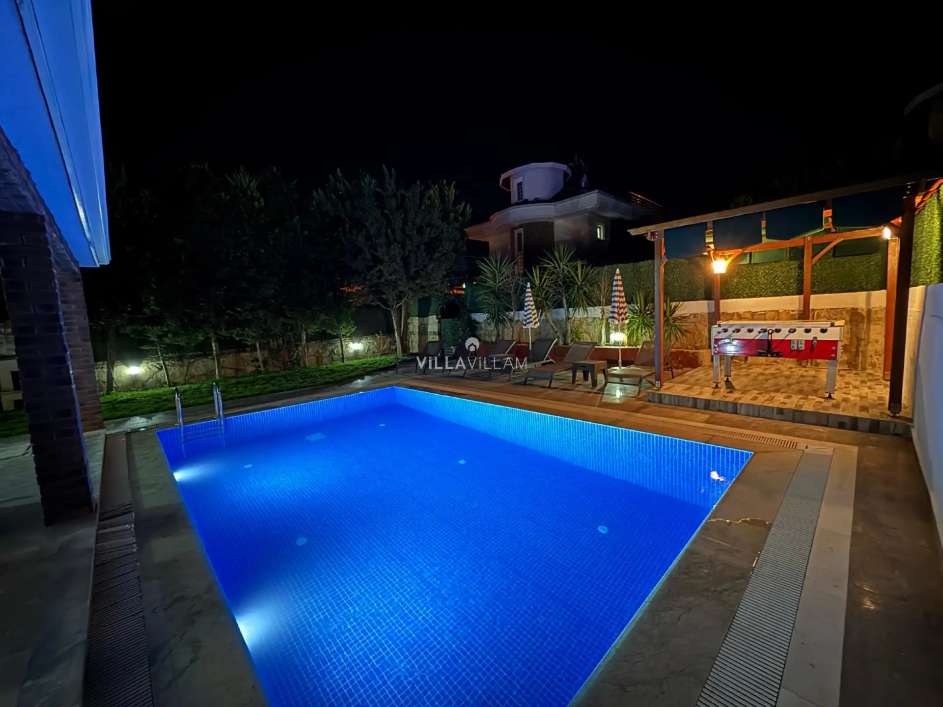Doğa manzarasına karşı, güneşlenip yüzebileceğiniz havuz terasında şezlong takımı, oturma grubu, langırt, salıncak ve barbekü alanı yer alırken, iç mekanda; havuz terasına açılan konforlu oturma odası ve tam donanımlı açık mutfağı,birinci yatak odasında çift kişilik yatak ve ebeveyn banyosu; ikinci yatak odasında çift kişilik yatak ve ebeveyn banyosu; üçüncü yatak odasında iki tek kişilik yatak, ebeveyn banyosu bulunmaktadır.