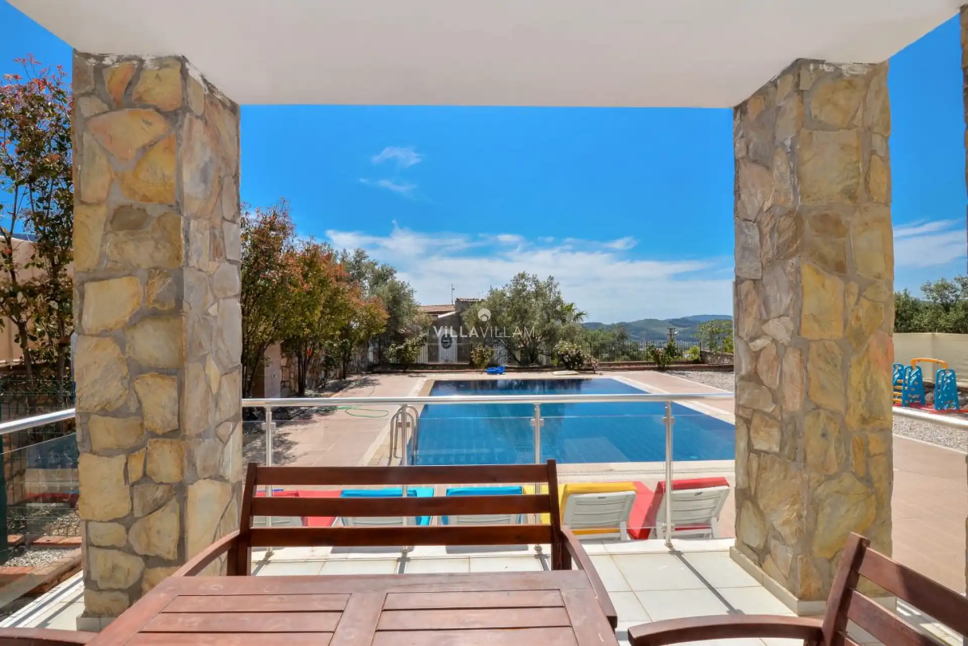 Dünyaca ünlü Ölüdeniz plajına ve merkeze rahatlıkla ulaşabileceğiniz konum avantajına sahiptir. Kapasiteye uygun oldukça geniş ebatlardaki havuzu, dış mekan mobilyaları ve gün içinde vakit geçirmekten oldukça keyif alacağınız bahçesi ile unutulmaz bir tatil deneyimi sunmaktadır. Yemyeşil bir atmosfer içinde yer alan villamızın iç mekanı da oldukça geniş ve ferah bir yaşam alanı sunmaktadır.Birinci yatak odası içerisinde çift kişilik yatak ve banyo; ikinci yatak odası içerisinde iki tek kişilik yatak ve banyo; üçüncü ve dördüncü yatak odası içerisinde çift kişilik yatak; beşinci yatak odası içerisinde ise iki tek kişilik yatak yer almaktadır. Ortak alanda ortak 1 adet banyo bulunmaktadır.
