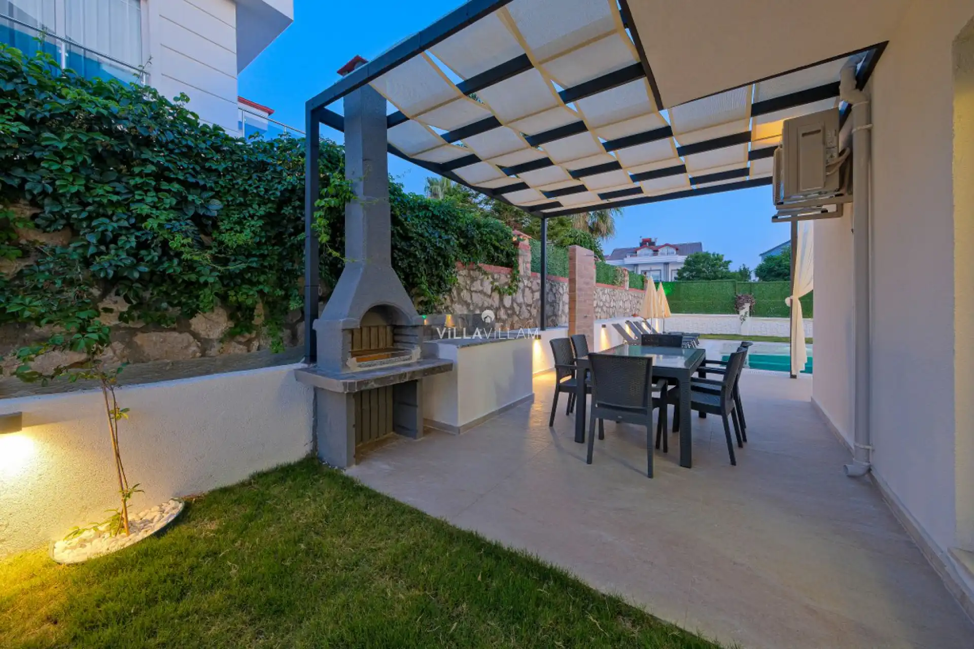 Geniş havuz ve bahçe alanında; şezlong takımı, oturma grubu ve sevdiklerinizle eğlenceli vakit geçirmeniz için tasarlanmış barbekü alanı bulunmaktadır. İç mekânda ise tüm ihtiyaçlarınıza karşılık verecek oturma odası ve kullanışlı mutfağın yanı sıra, birinci yatak odasında çift kişilik yatak, jakuzi ve ebeveyn banyosu; ikinci yatak odasında çift kişilik yatak ve ebeveyn banyosu; üçüncü yatak odasında ise iki tek kişilik yatak ve banyo yer almaktadır.