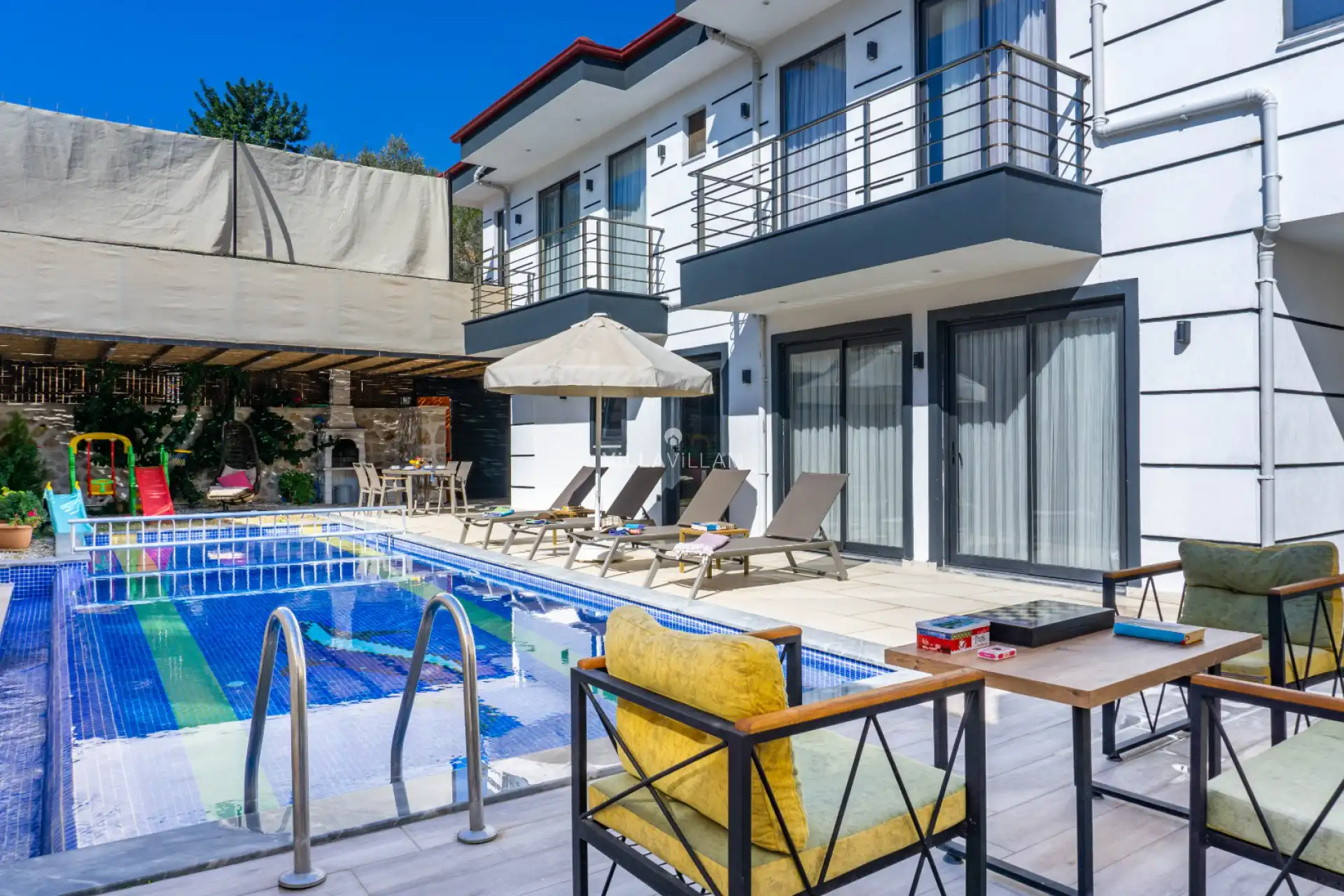 Kalkan Patara mevkiinde konumlandırılan villamız 2 yatak odasıyla 4 kişilik konaklama kapasitesi sunmaktadır. Korunaklı havuz alanıyla ailenizle birlikte gözlerden uzak huzurlu bir tatil geçirebileceğiniz villamızın bahçesinde eğlenceli zaman geçirebilmeniz adına dart, tavla, satranç, masa tenisi, mini futbol ve minik misafirlerimiz için oyun alanı yer almaktadır.