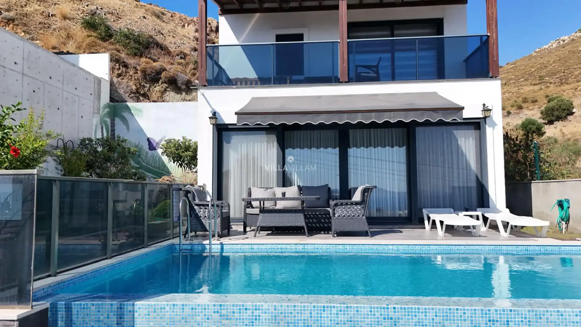 Deniz manzarasının karşısında tatilinizin en özel anlarını deneyimleyeceğiniz, ilk adım attığınız anda ayrıcalıklı bir tatilin başladığını hissedeceğiniz villamızın özellikle havuz alanı maksimum keyif alabileceğiniz özel bir yapıya sahiptir.