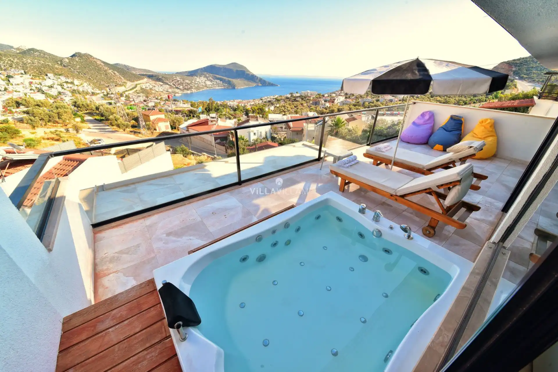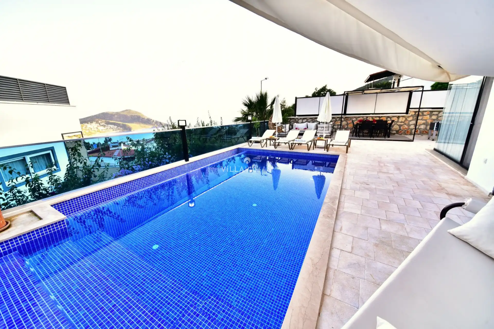 Lük konsept villada Kalkan'ın muhteşem doğa manzarasına ve niz manzarasına karşı, güneşlenip yüzebileceğiniz havuz terasında şezlong takımı, oturma grubu ve barbekü alanı bulunmaktadır. Villanın yine havuz terasına açılan konforlu oturma odası ve tam donanımlı açık mutfağı,birinci yatak odasında çift kişilik yatak, ebeveyn banyosu ve jakuzi; ikinci yatak odasında çift kişilik yatak ve ebeveyn banyosu; üçüncü yatak odasında iki tek kişilik yatak, ebeveyn banyosu bulunmaktadır.